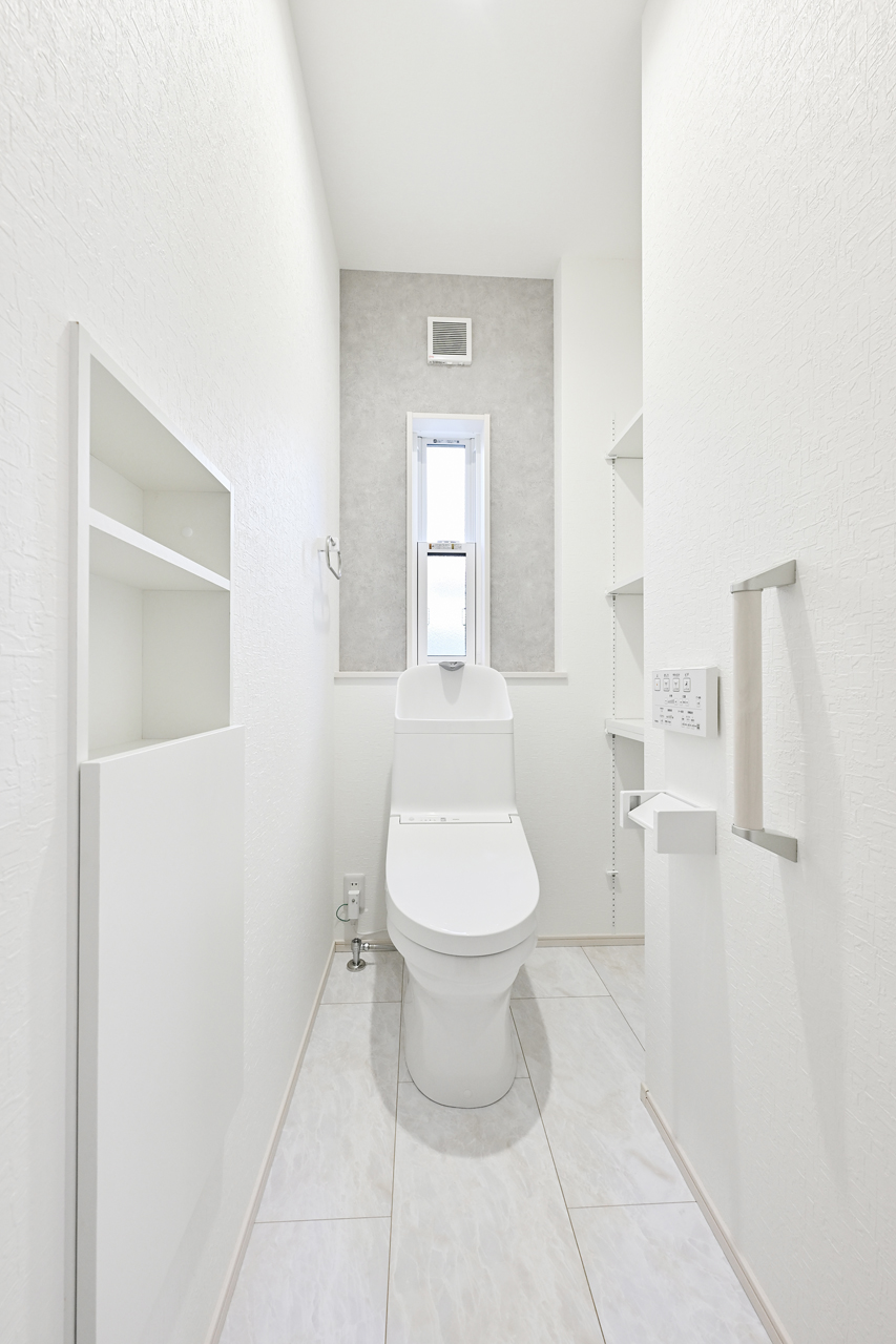 座る・立つといった動作が足腰への大きな負担をかけるトイレ。握りやすい位置に手すりを設置して、負担の軽減に配慮しています。