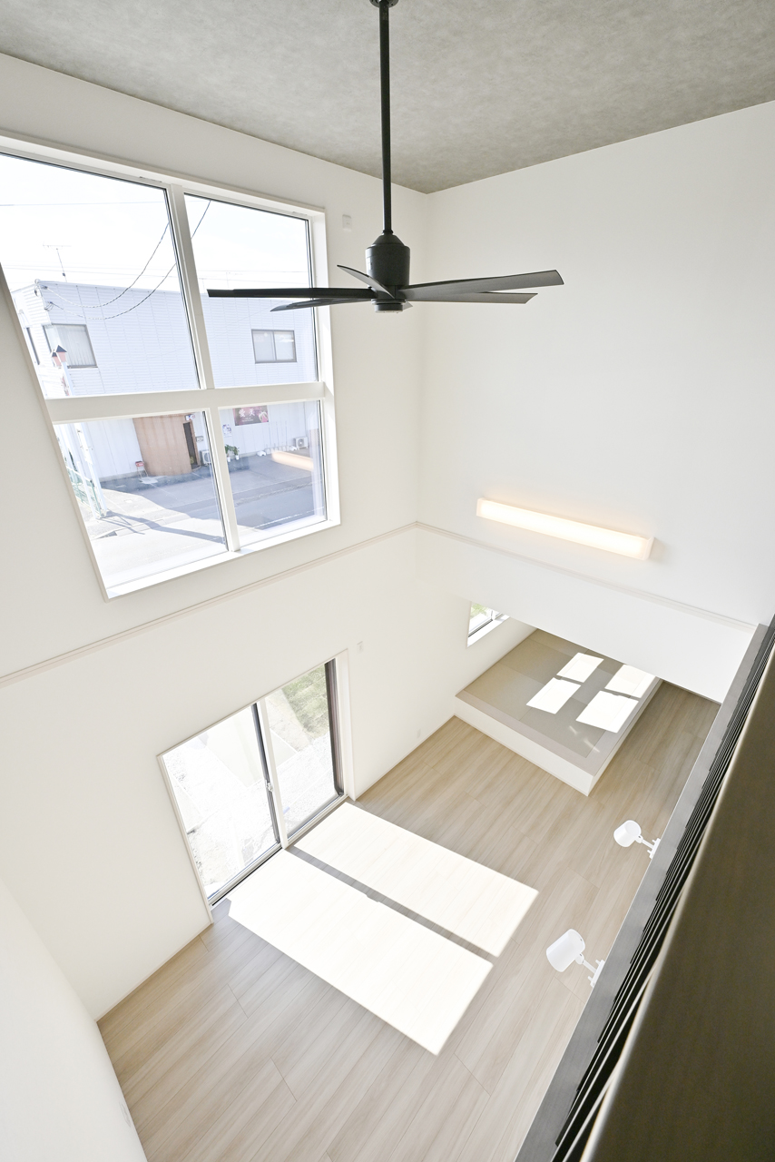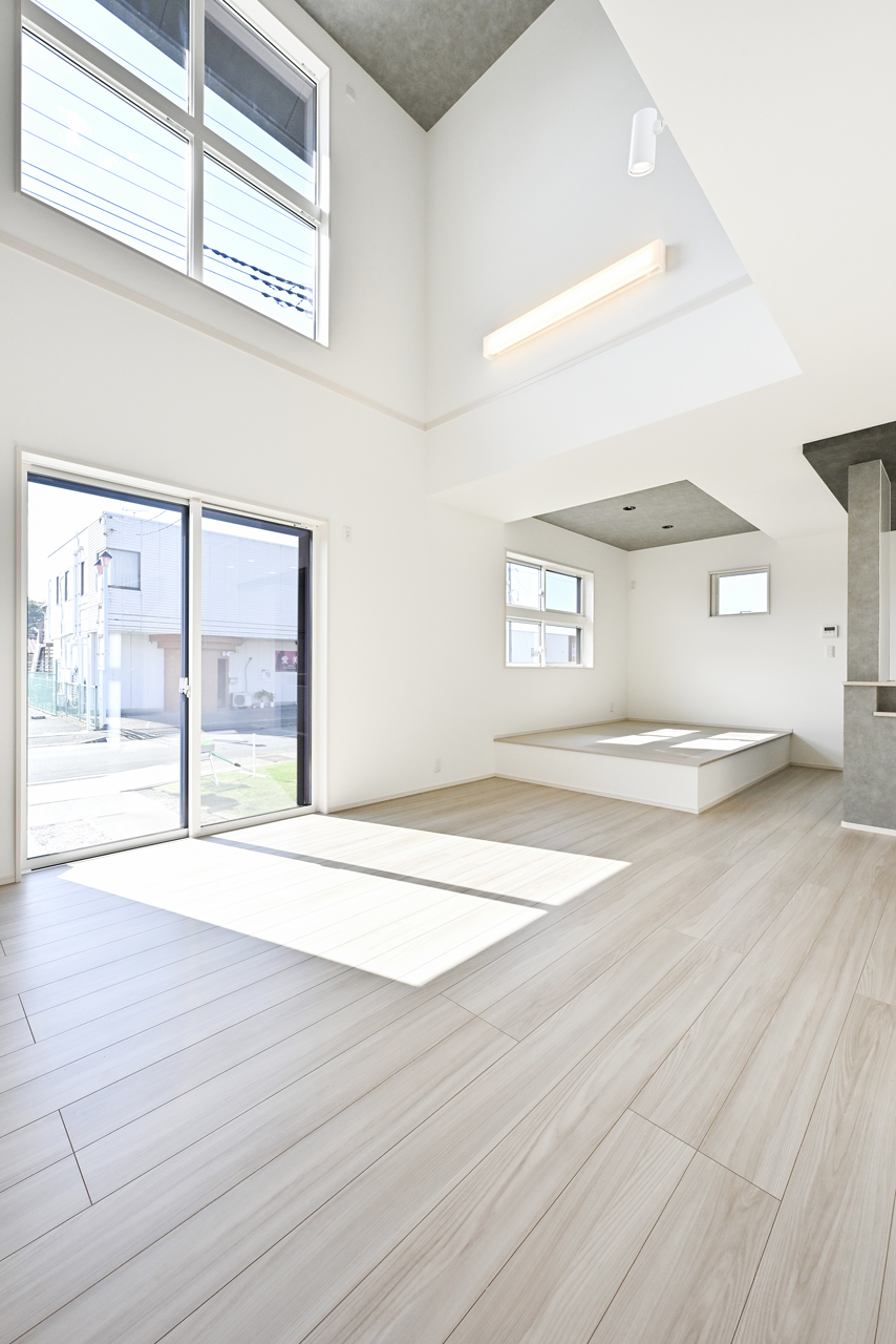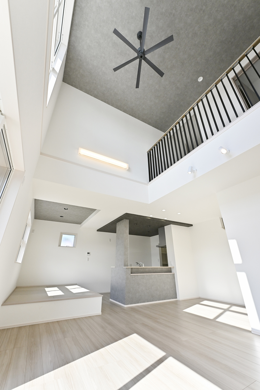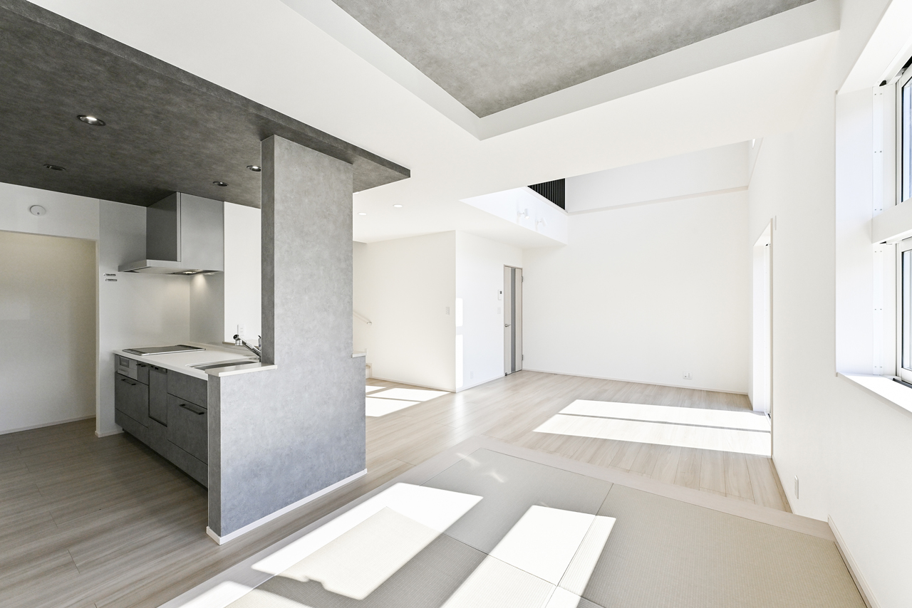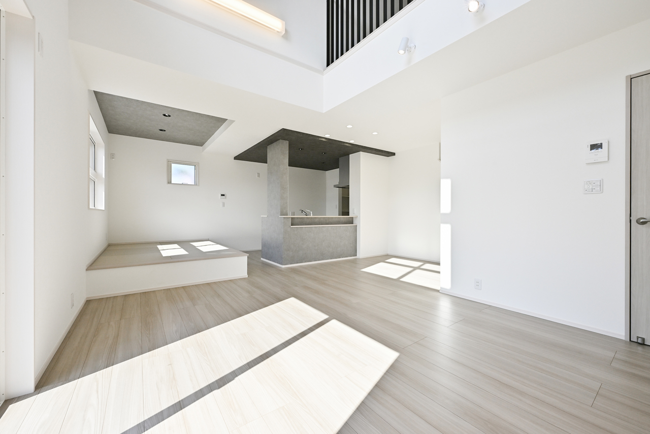 吹抜のあるLDKにプラスしたタタミコーナーや随所に備えた収納など、暮らしに快適さを描く住まい