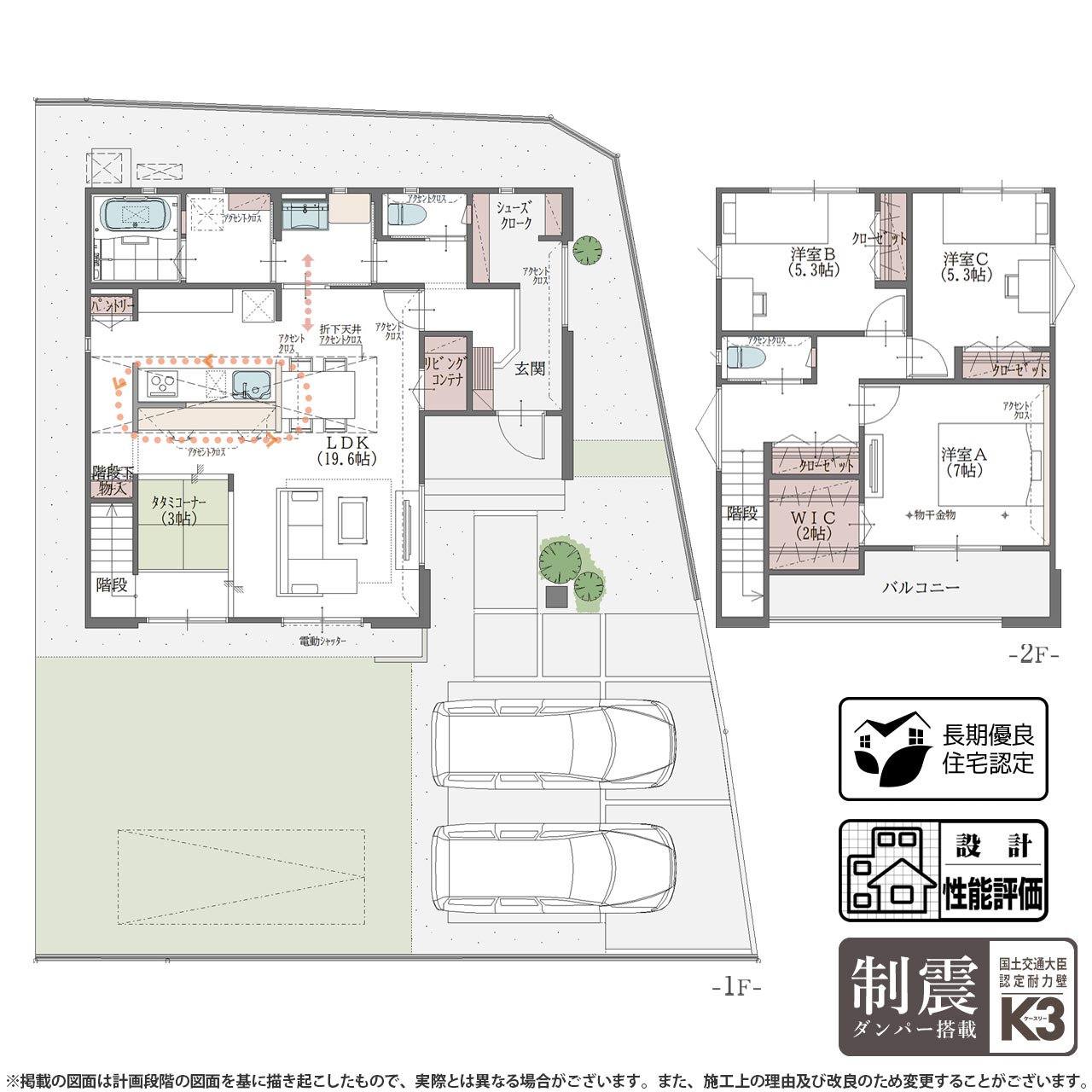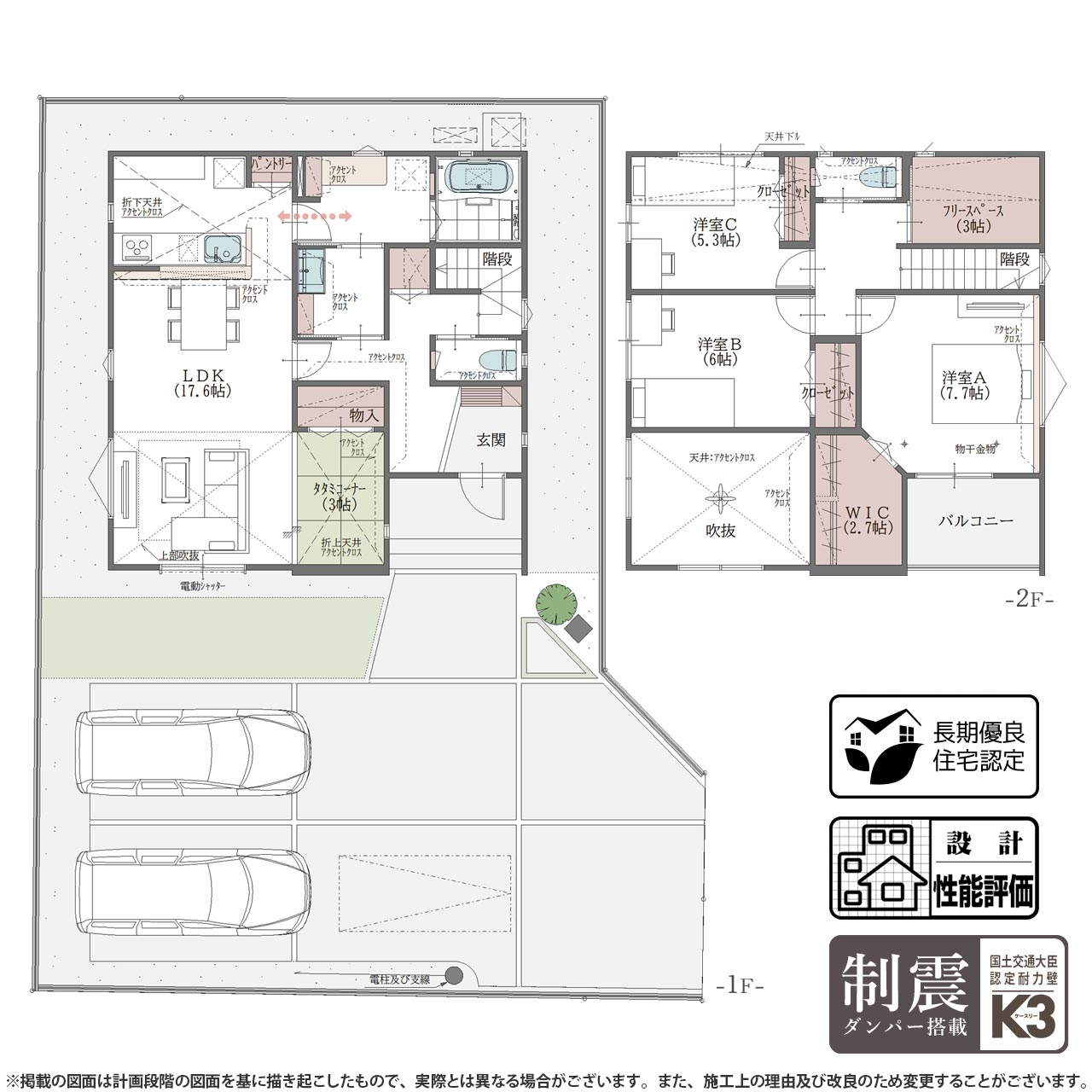 通勤やレジャーなど、ライフスタイルを広げてくれるカースペースを2台分確保しました。来客用の駐車スペースとしても最適です。
