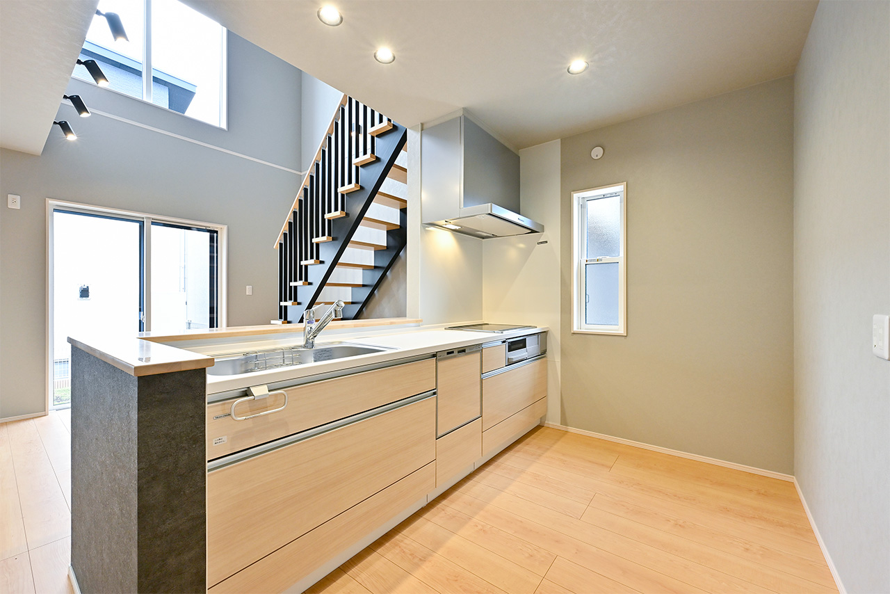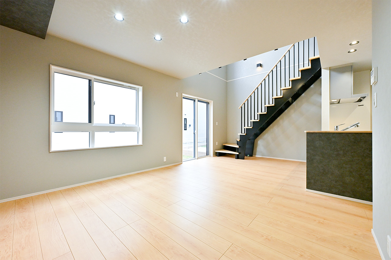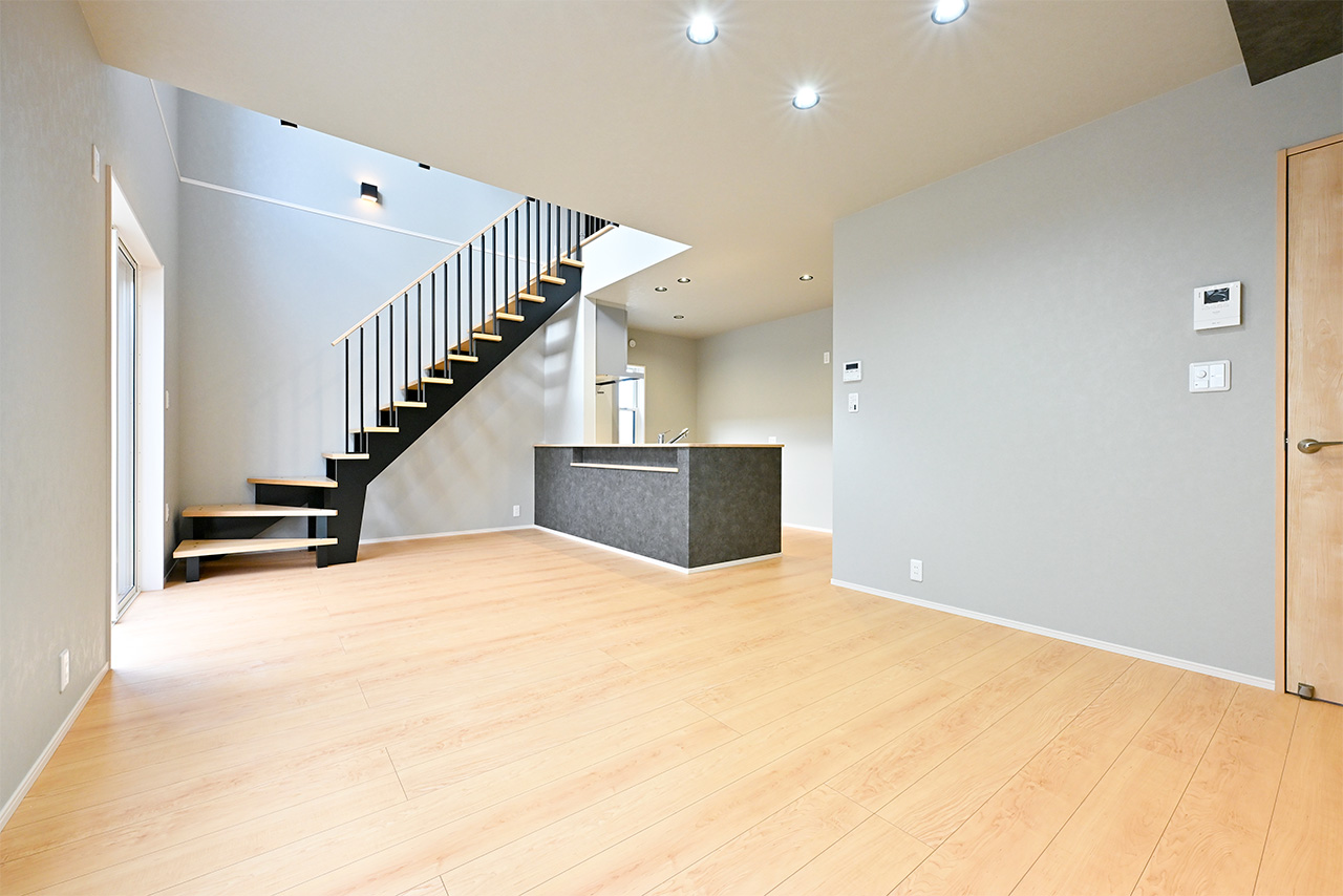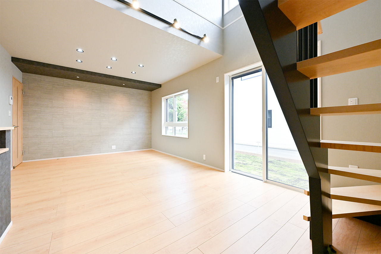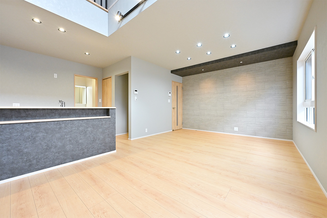 ご家族の団らんや寛ぎの中心となるリビング空間をさらに際立たせる吹抜け天井プラン。2階天井まで続くその圧倒的な存在感と広がりが訪れた方を驚きを持ってお迎えします。大切にしたいご家族やゲストをもてなす上質な空間です。