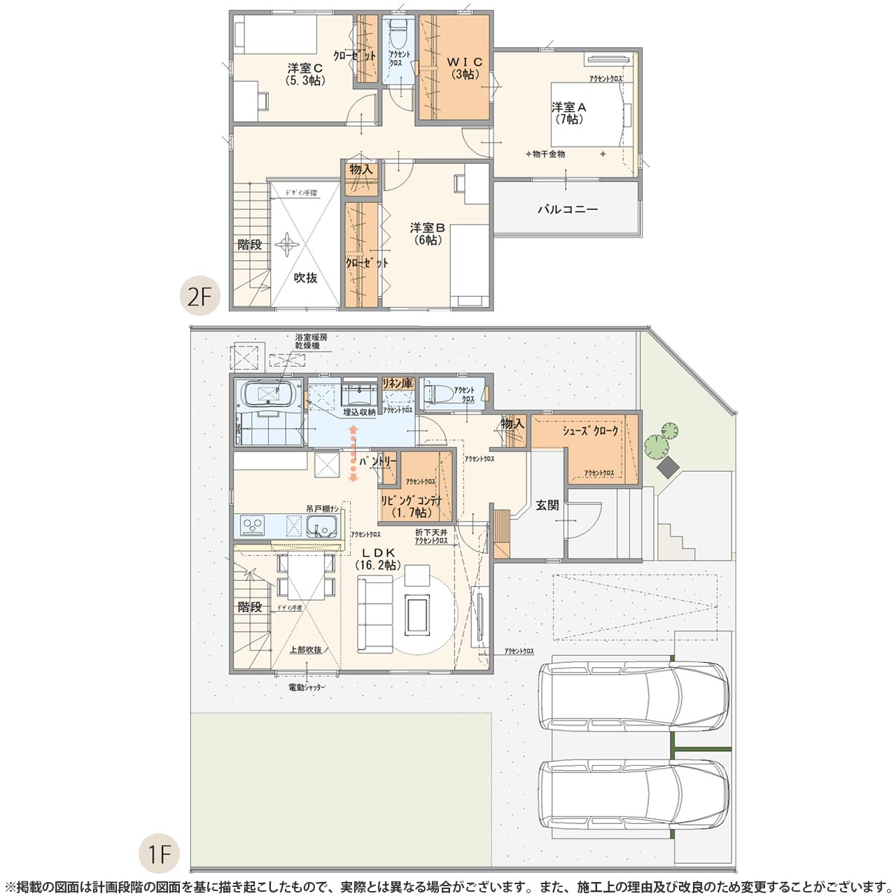 シューズクロークやリビングコンテナなど、生活動線の各所に大型収納スペースを備えた住まい