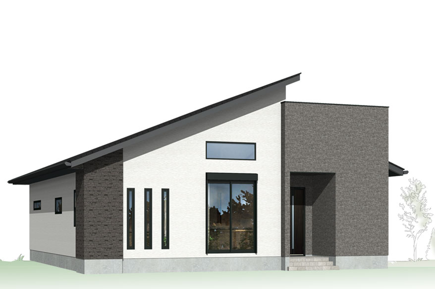 【平屋】LDKに見せ梁や勾配天井、タタミコーナーを備えた憩いプラン