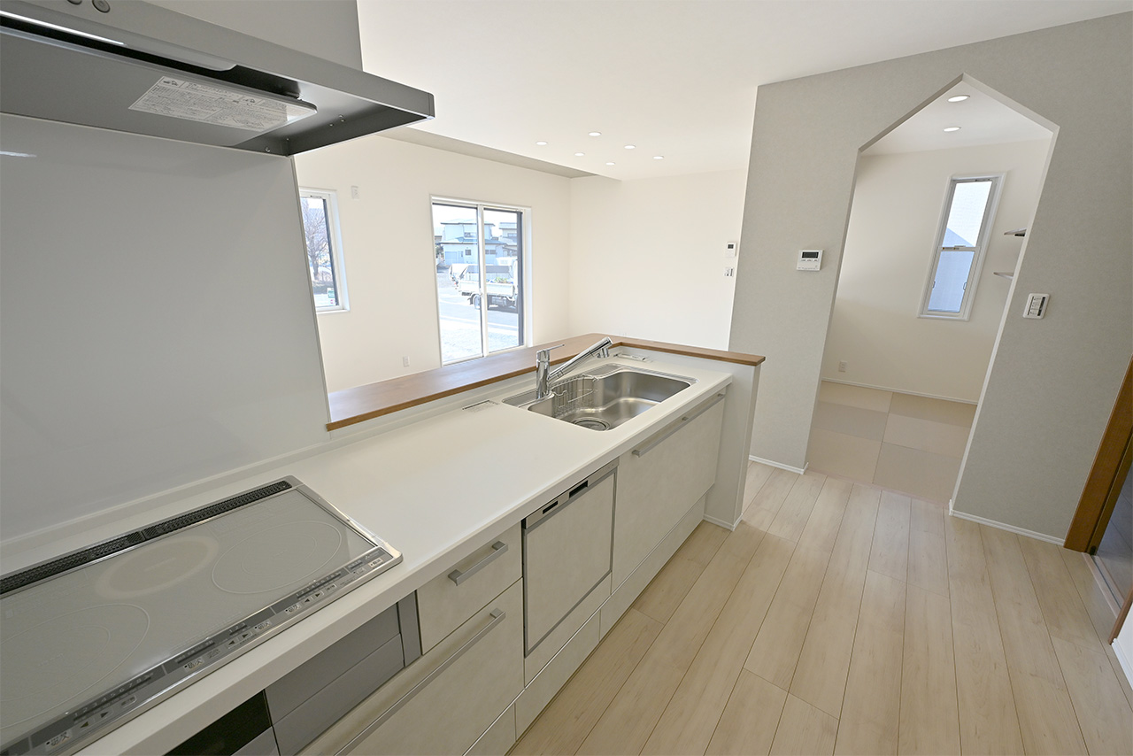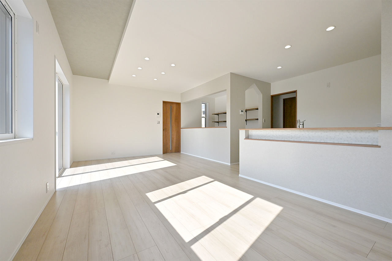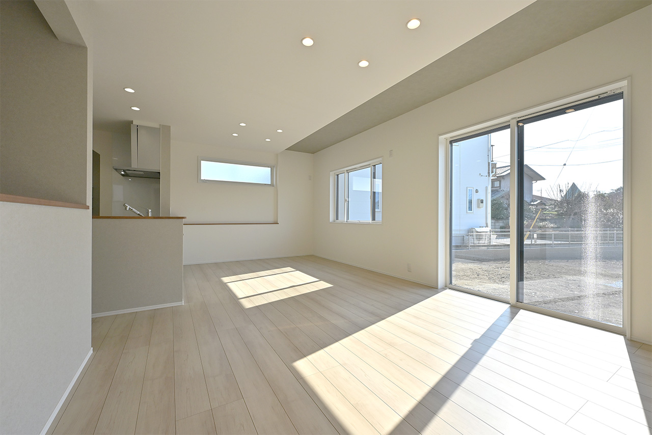 リビングという暮らしのメインスペースは、一日で家族が一番長く過ごす場所。その居心地をさらに高めるために18帖以上のワイドな広さを確保しました。広場のようなパブリックスペースがご家族の集いや団らんを心地よく育みます。