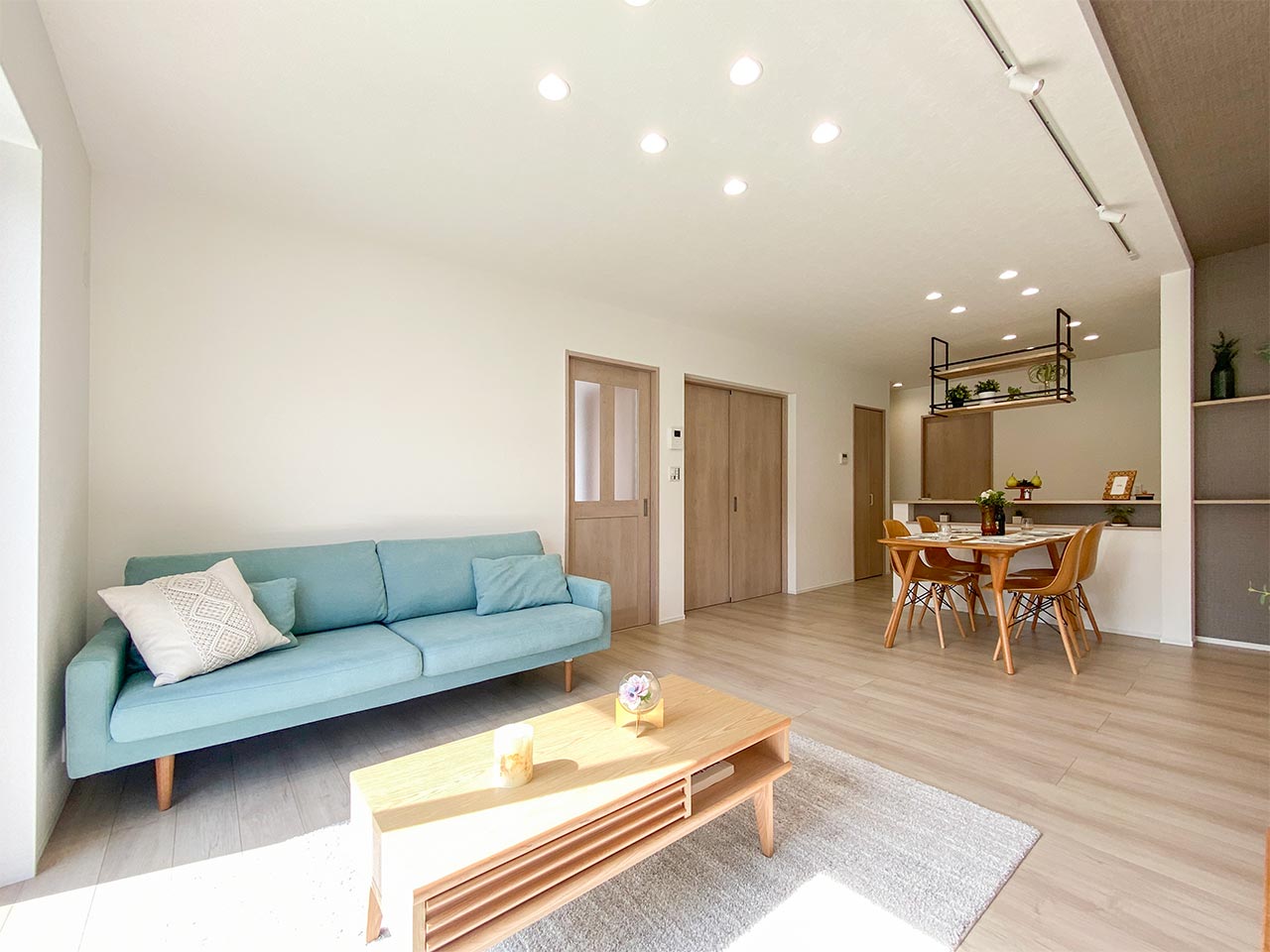 リビングという暮らしのメインスペースは、一日で家族が一番長く過ごす場所。その居心地をさらに高めるために18帖以上のワイドな広さを確保しました。広場のようなパブリックスペースがご家族の集いや団らんを心地よく育みます。
