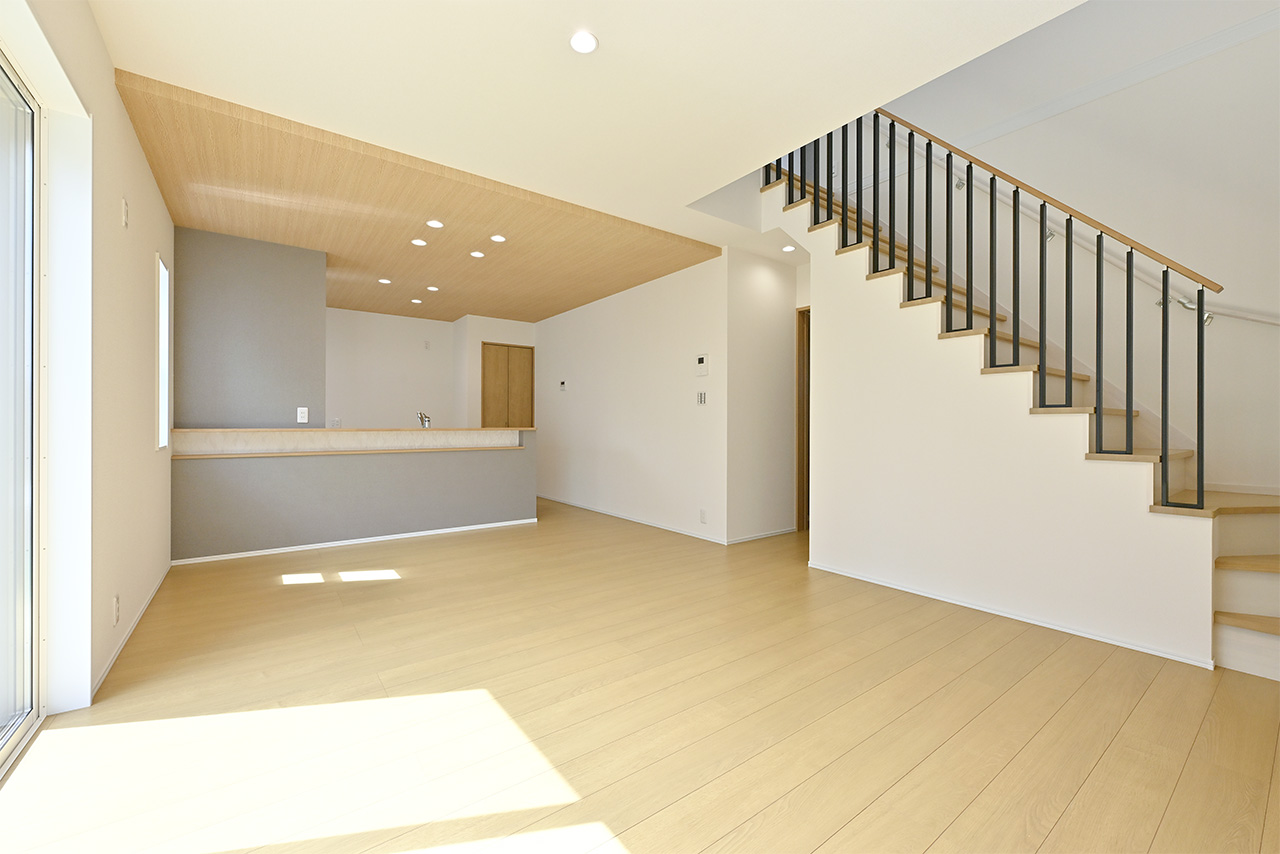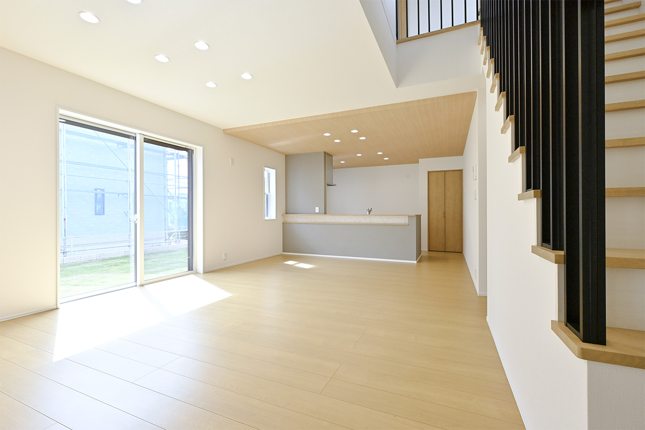 ご家族の団らんや寛ぎの中心となるリビング空間をさらに際立たせる吹抜け天井プラン。2階天井まで続くその圧倒的な存在感と広がりが訪れた方を驚きを持ってお迎えします。大切にしたいご家族やゲストをもてなす上質な空間です。