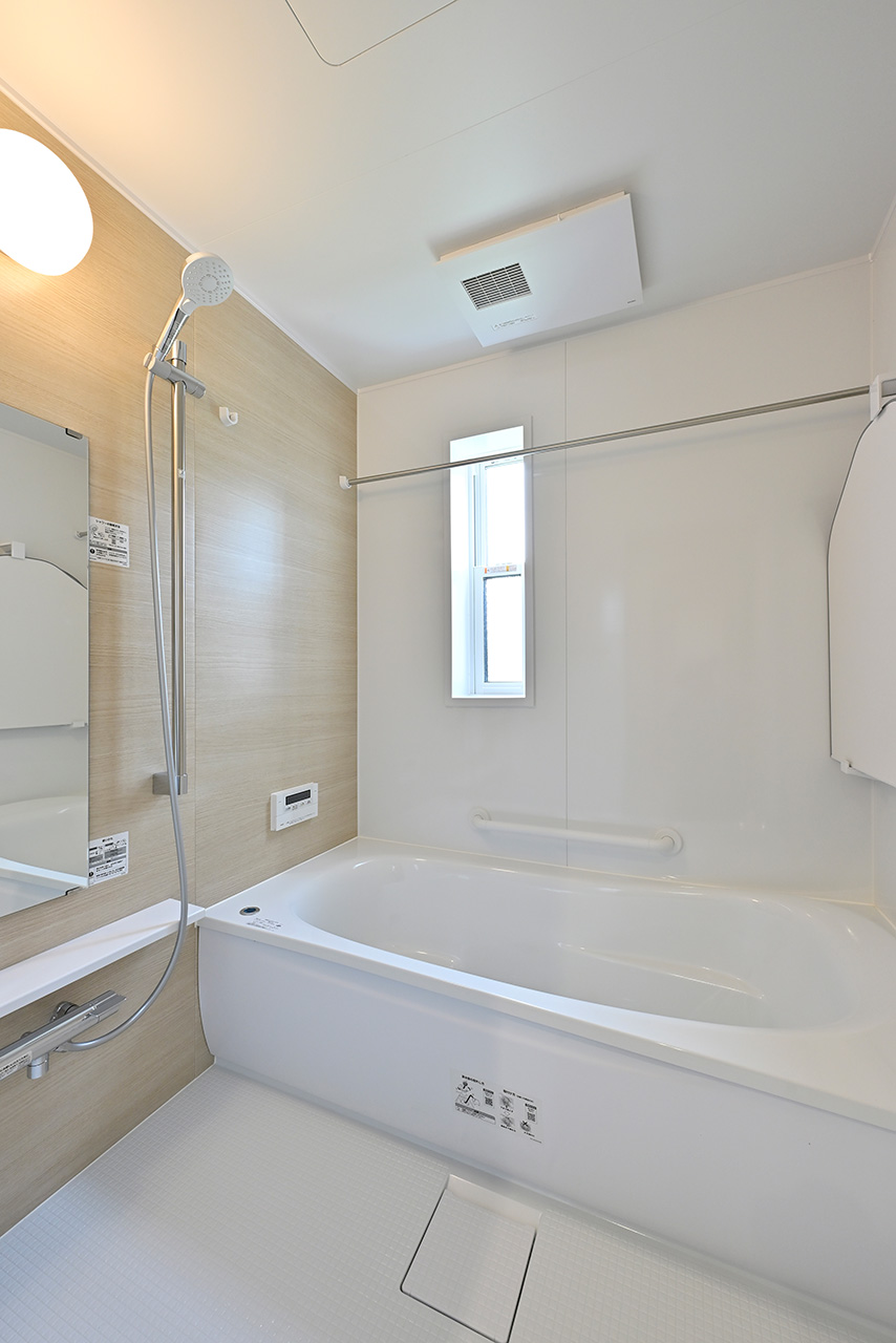雨の日も気にせず洗濯物が浴室内に干せる浴室換気乾燥暖房機を標準装備。時間も天気も気にせず干せるからとても便利。また、浴室のジメジメした環境から発生するカビも抑えることができます。