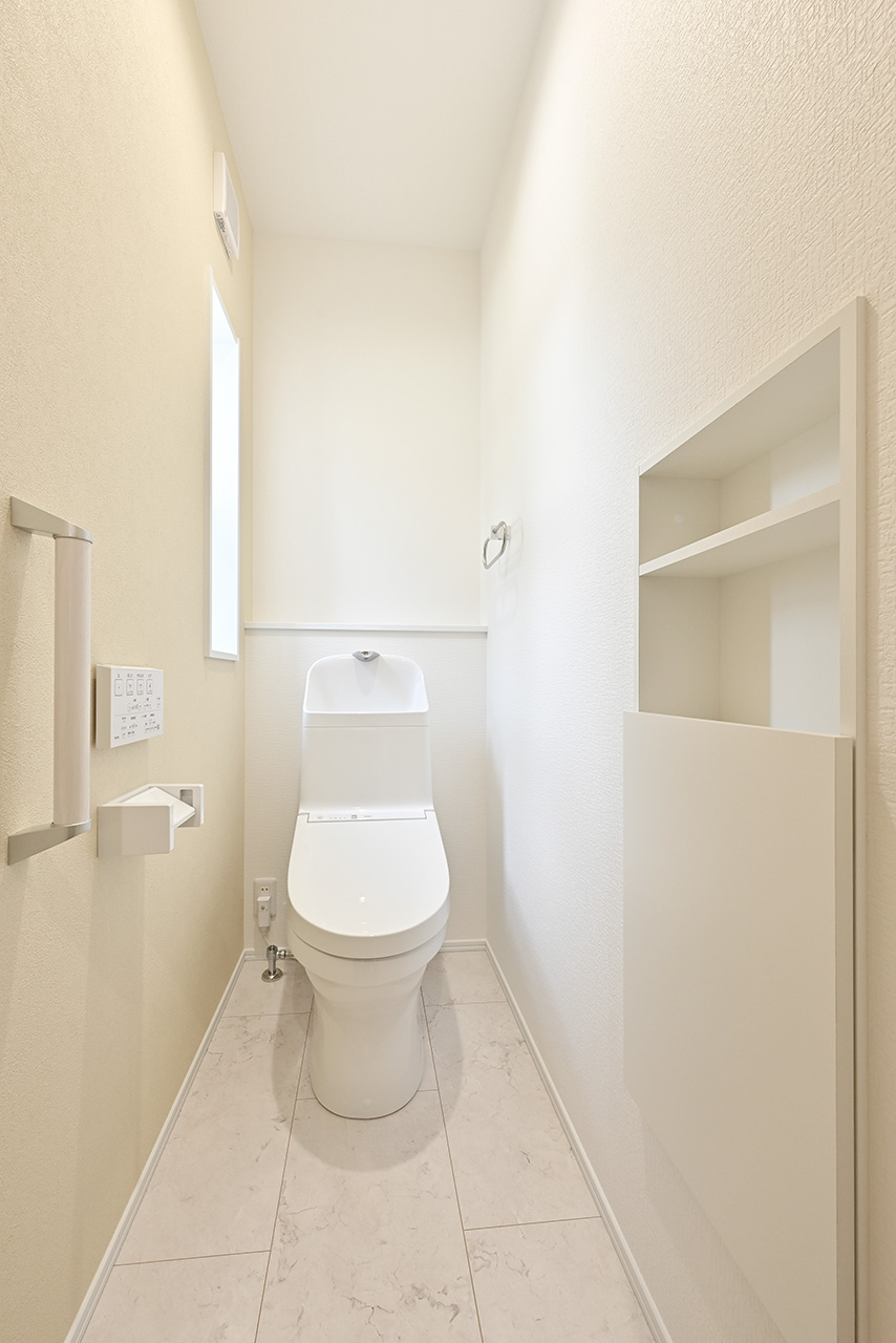 トイレや洗面脱衣室などの開口部には、防犯用の面格子付窓や、侵入できない小さな窓を採用し防犯性を高めています。※分譲地により異なります。
