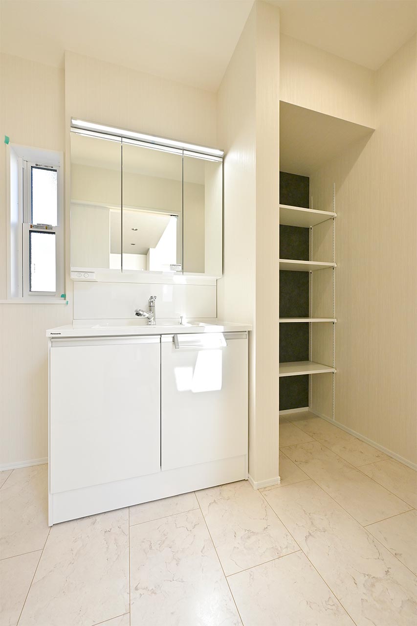 水回り空間にくまなく目が届く、回遊型の動線を採用したシステムキッチン。両サイドからアクセスできる開放的なキッチンは、家族が協力しやすく、家族の食事の時間も楽しくなりそう。親子で一緒に作業する体験を通じて、子供達の健やかな成長をアシストします。