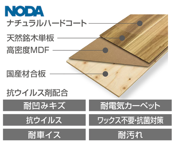 ナチュラルハードコート仕上げ天然木の自然な風合いを活かし、低艶で塗装感のない仕上りとしながらも耐久性のある塗装です。