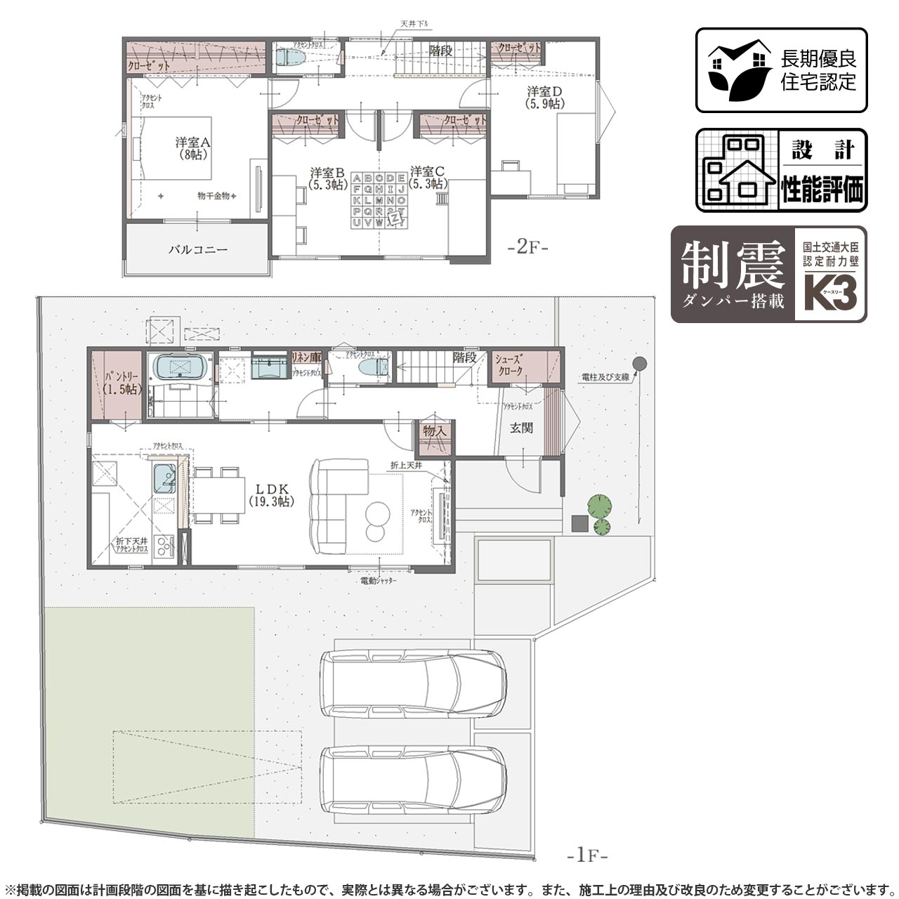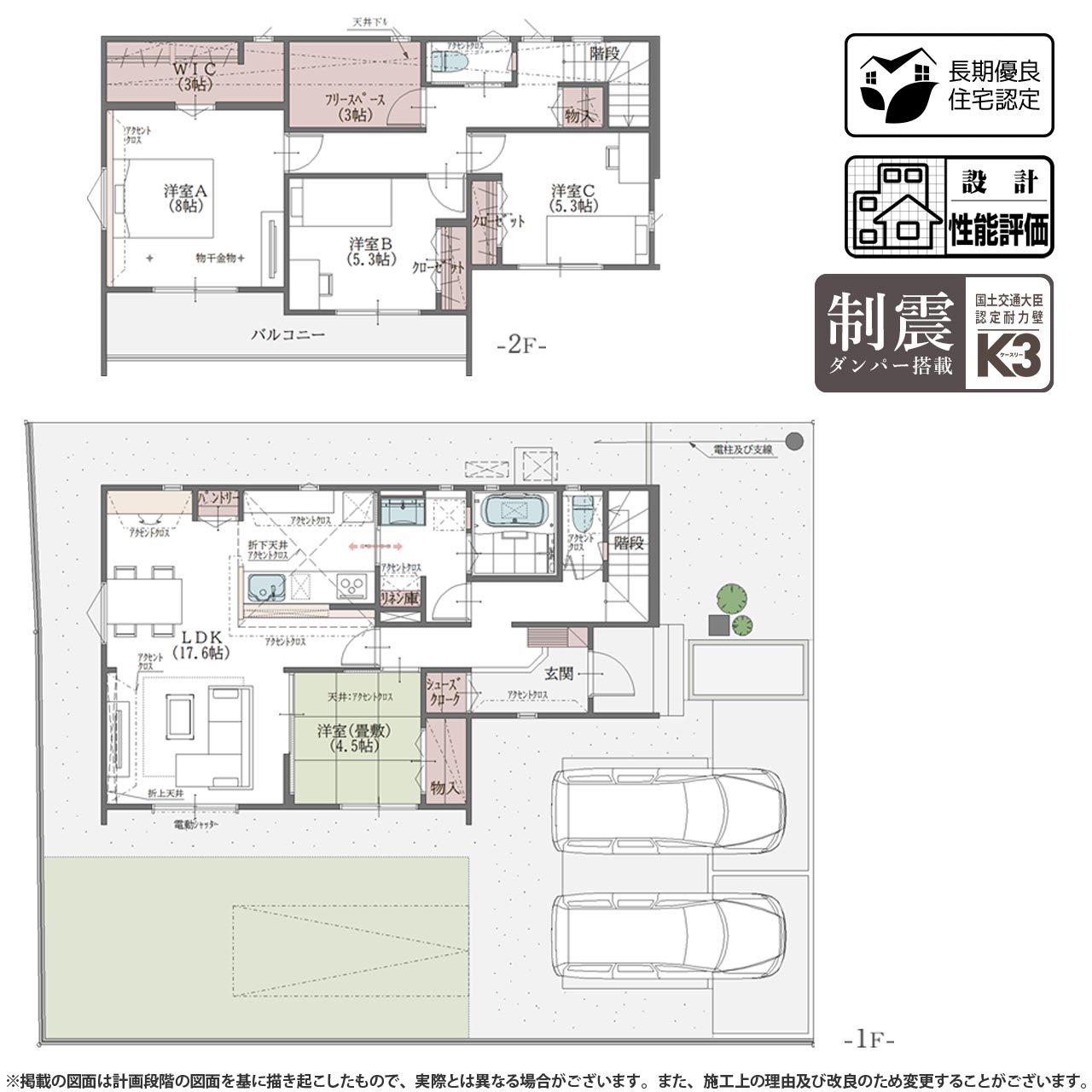 | 販売価格 | 3,480万円(外構工事費・消費税込) ※販売価格には建物の消費税分が含まれます。 |