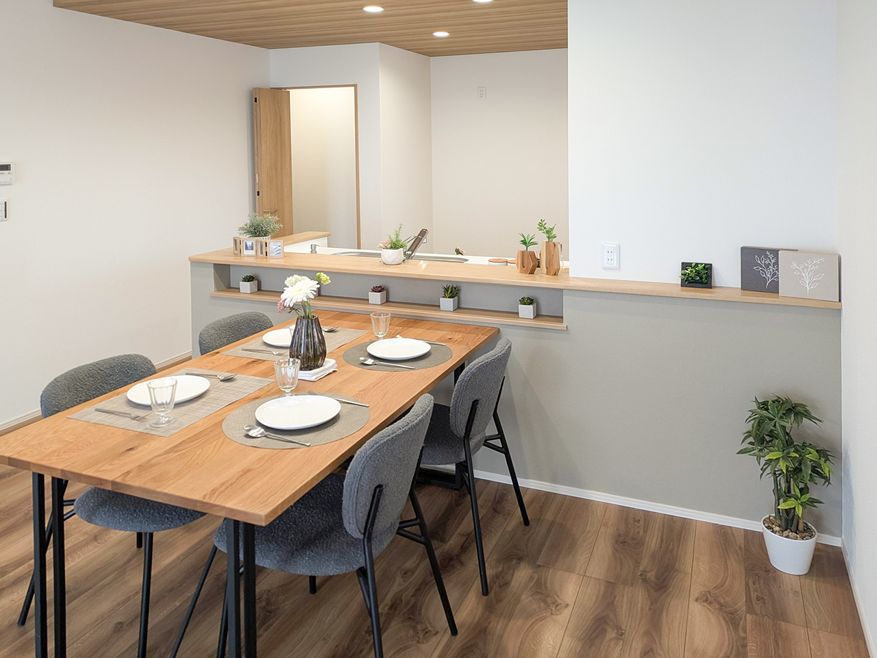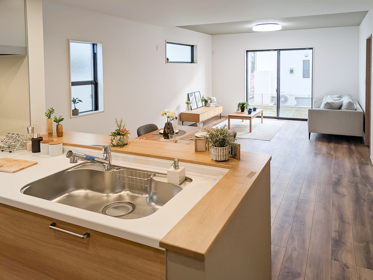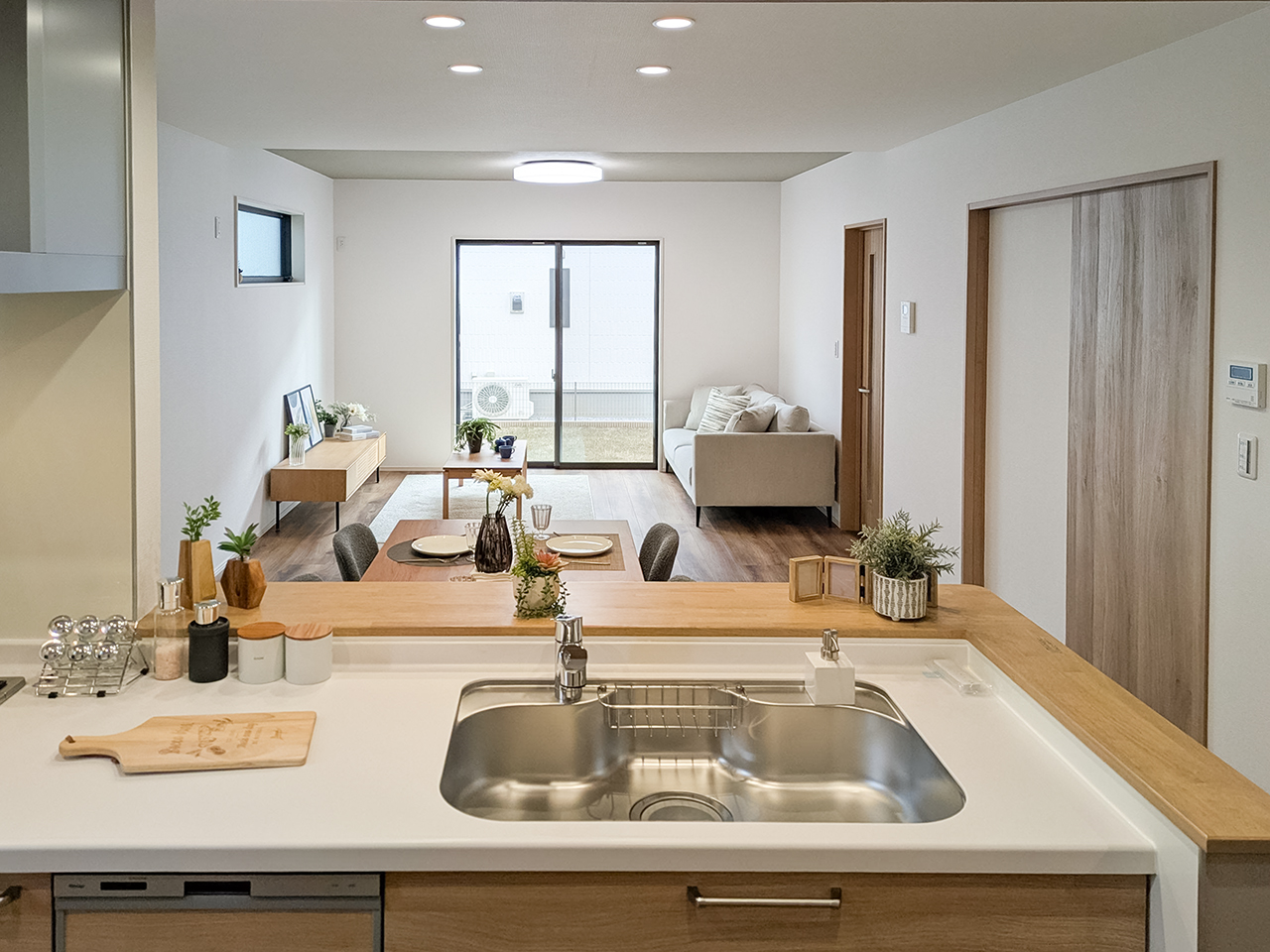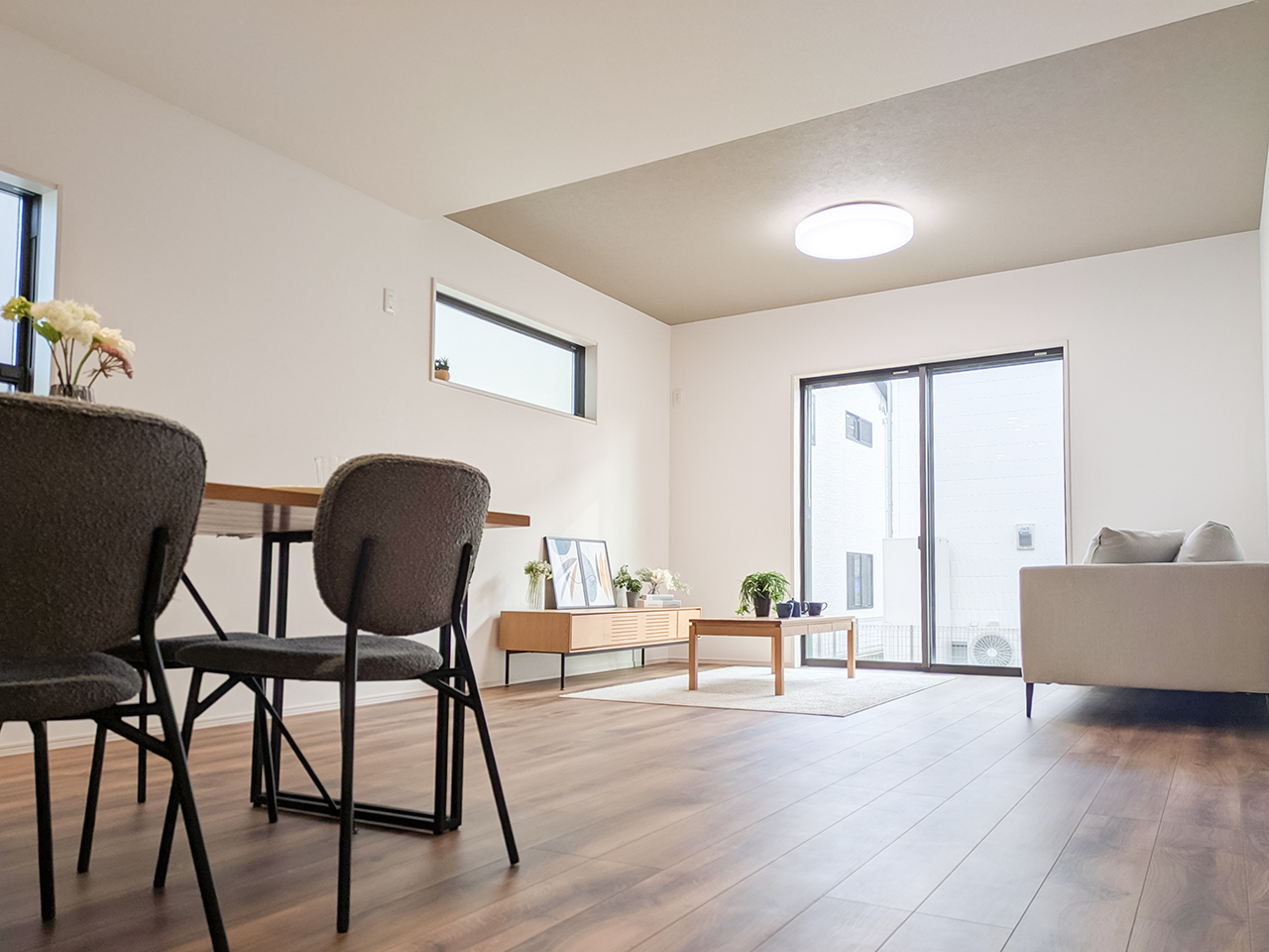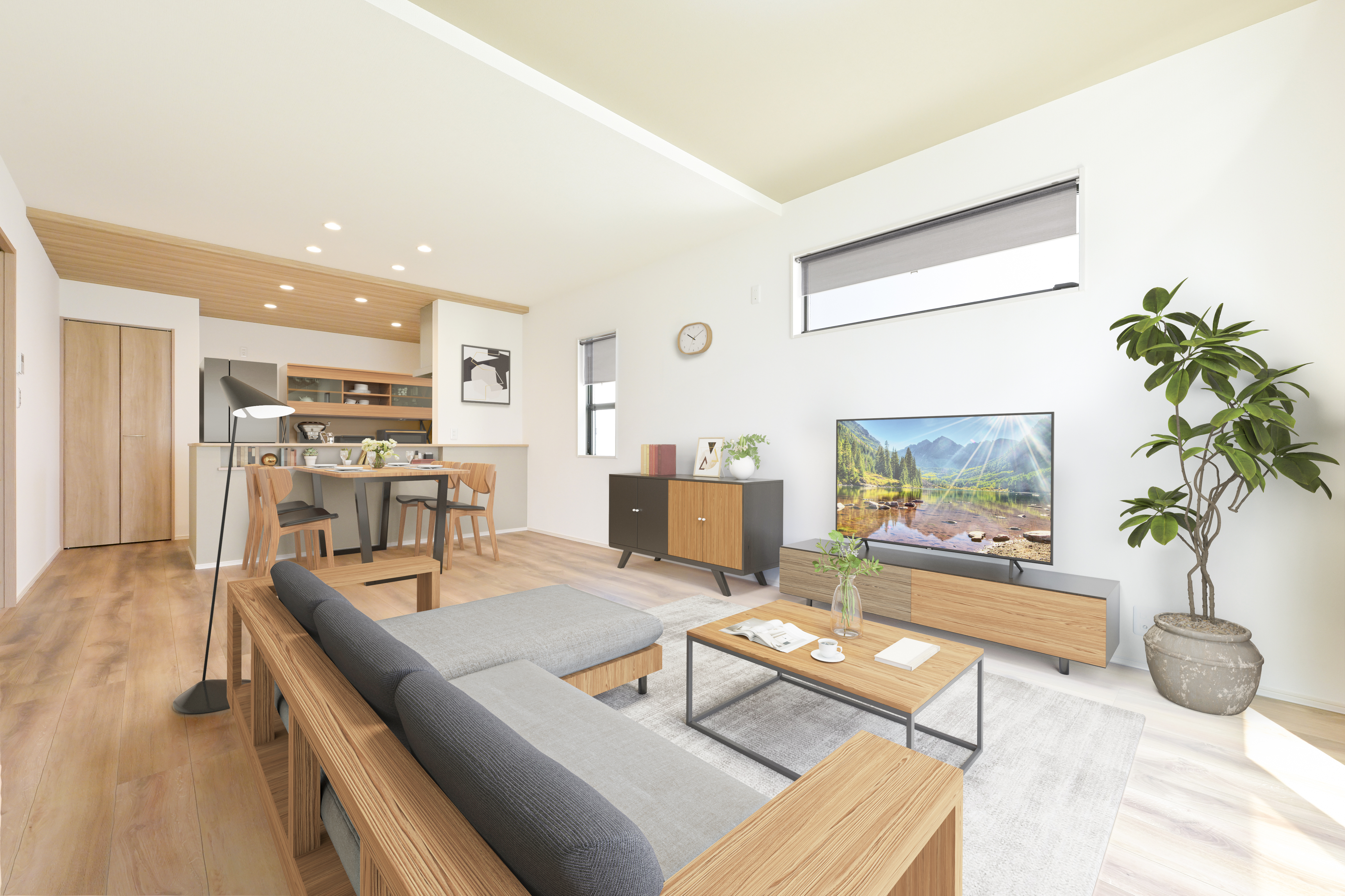 リビングという暮らしのメインスペースは、一日で家族が一番長く過ごす場所。その居心地をさらに高めるために18帖以上のワイドな広さを確保しました。広場のようなパブリックスペースがご家族の集いや団らんを心地よく育みます。