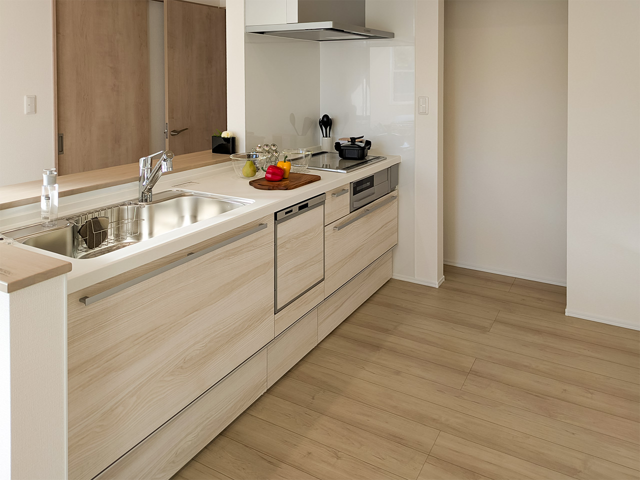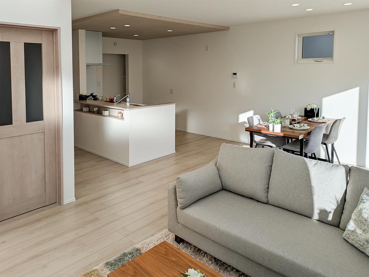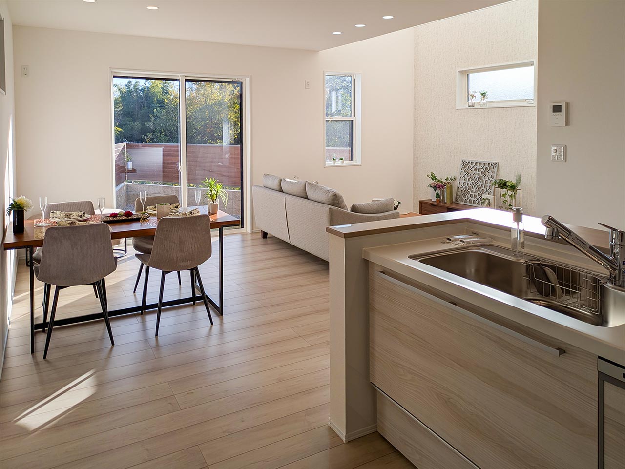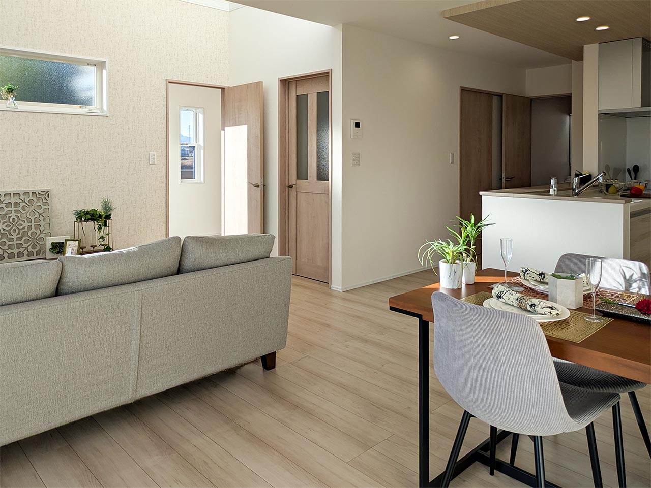 リビングという暮らしのメインスペースは、一日で家族が一番長く過ごす場所。その居心地をさらに高めるために18帖以上のワイドな広さを確保しました。広場のようなパブリックスペースがご家族の集いや団らんを心地よく育みます。