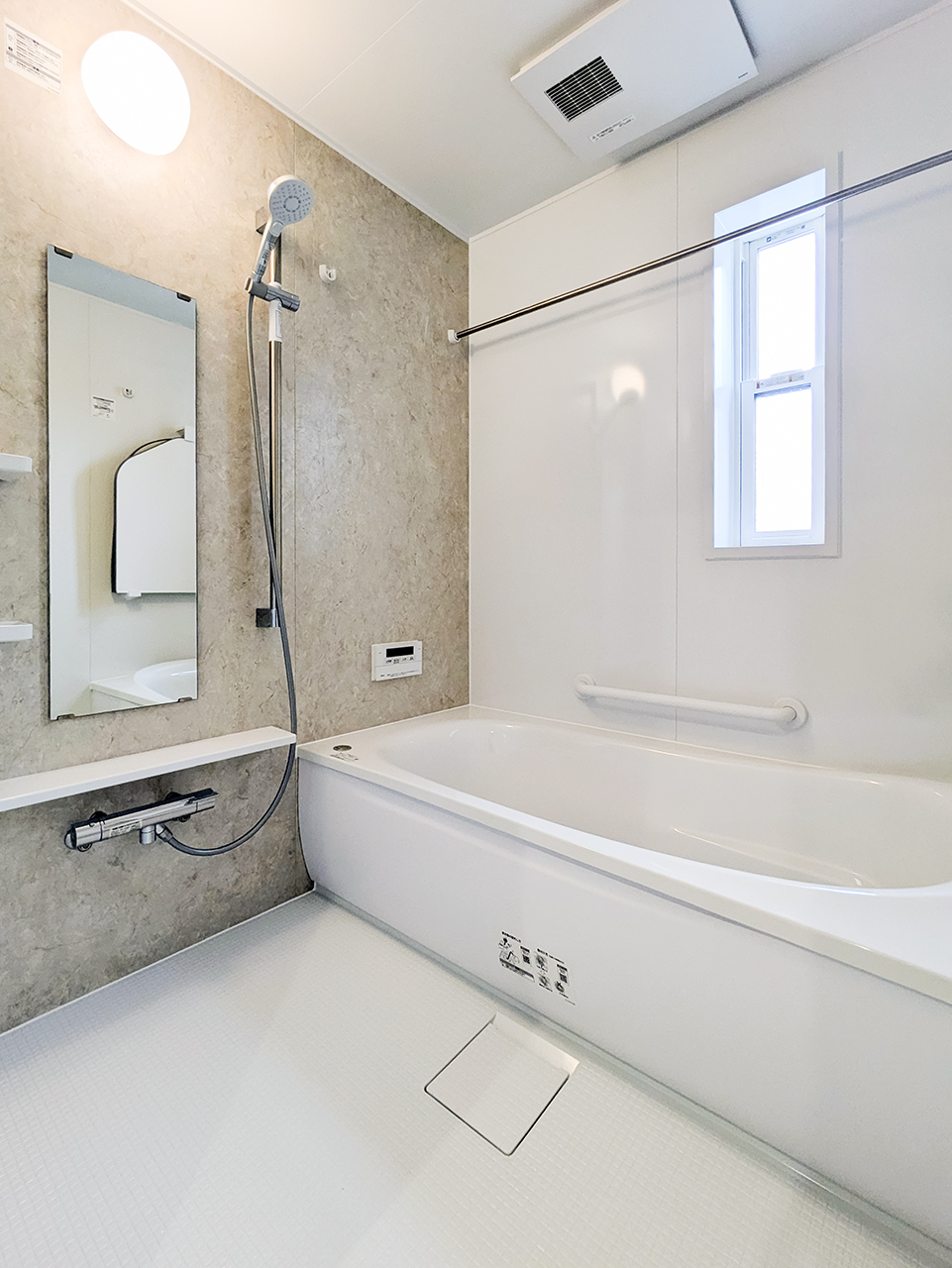 雨の日も気にせず洗濯物が浴室内に干せる浴室換気乾燥暖房機を標準装備。時間も天気も気にせず干せるからとても便利。また、浴室のジメジメした環境から発生するカビも抑えることができます。