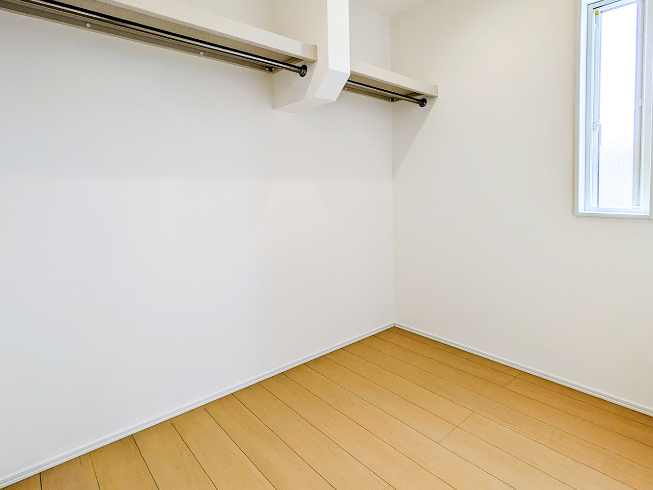 ご夫婦や子ども達の衣類をたっぷりしまえる大容量のウォークインクローゼット。季節の衣類から鞄や帽子などの小物までたっぷり保管可能。ウォークインタイプなので衣類の出し入れや整理整頓もスムーズに行えます。