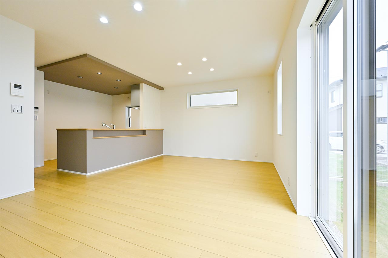 リビングという暮らしのメインスペースは、一日で家族が一番長く過ごす場所。その居心地をさらに高めるために18帖以上のワイドな広さを確保しました。広場のようなパブリックスペースがご家族の集いや団らんを心地よく育みます。