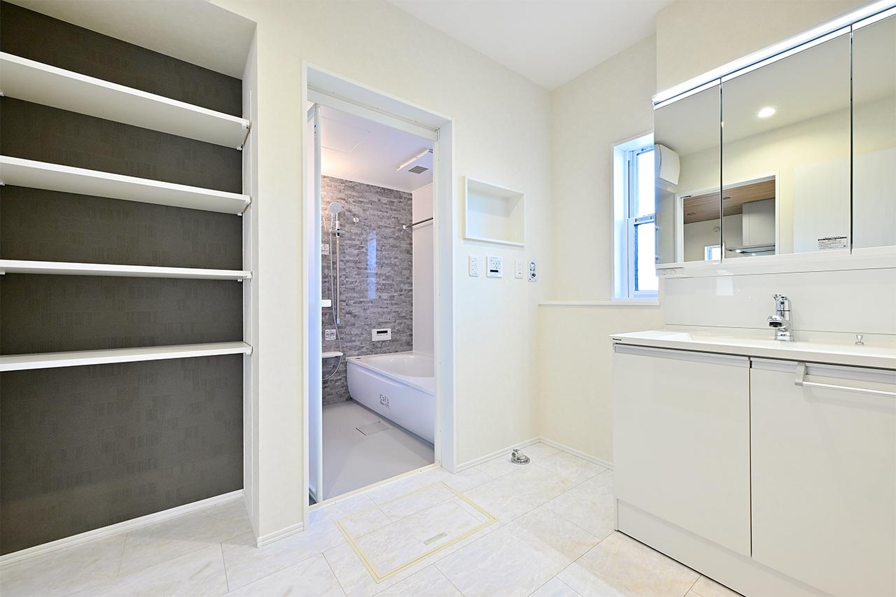インナーバルコニー隣接の「コモレビ空間」で、雨の日や外出時も安心して洗濯できる快適な住まい
