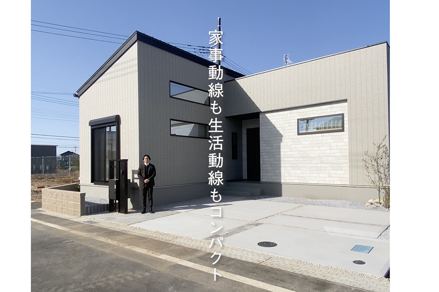 Grandy×STYLE コラボモデルハウス、勾配天井を設えた平屋プラン