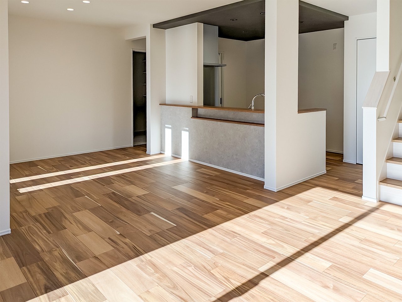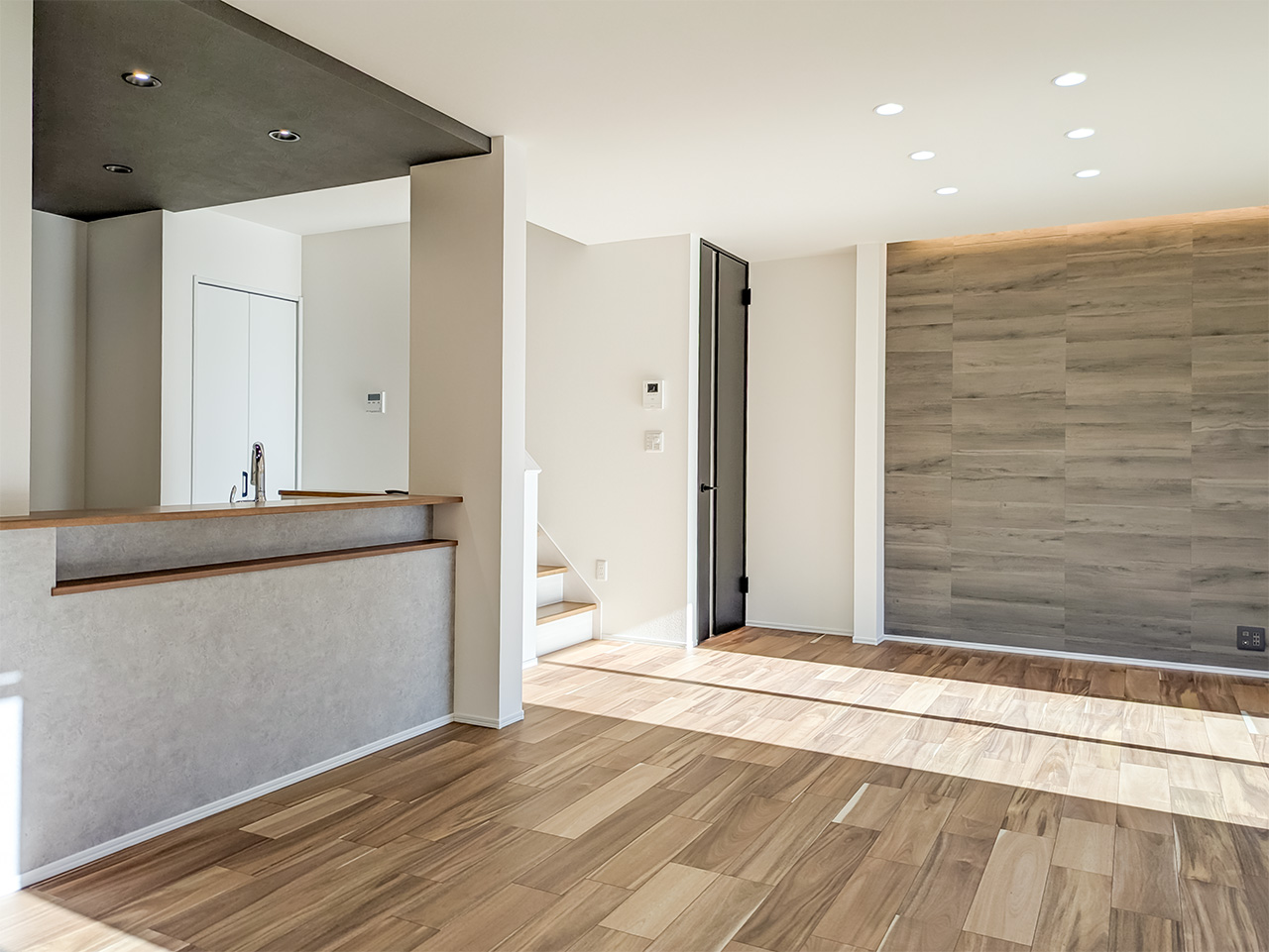 リビングという暮らしのメインスペースは、一日で家族が一番長く過ごす場所。その居心地をさらに高めるために18帖以上のワイドな広さを確保しました。広場のようなパブリックスペースがご家族の集いや団らんを心地よく育みます。