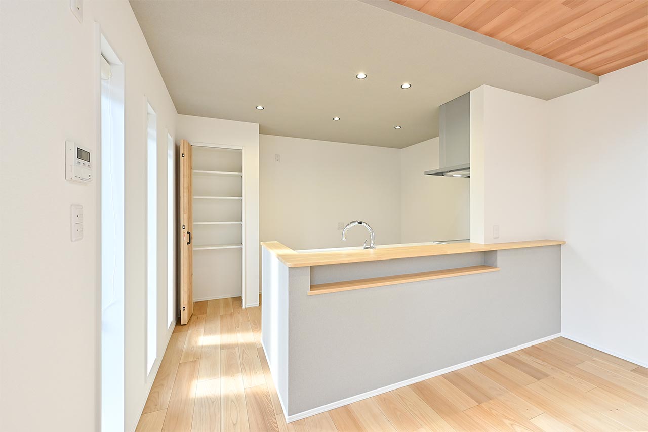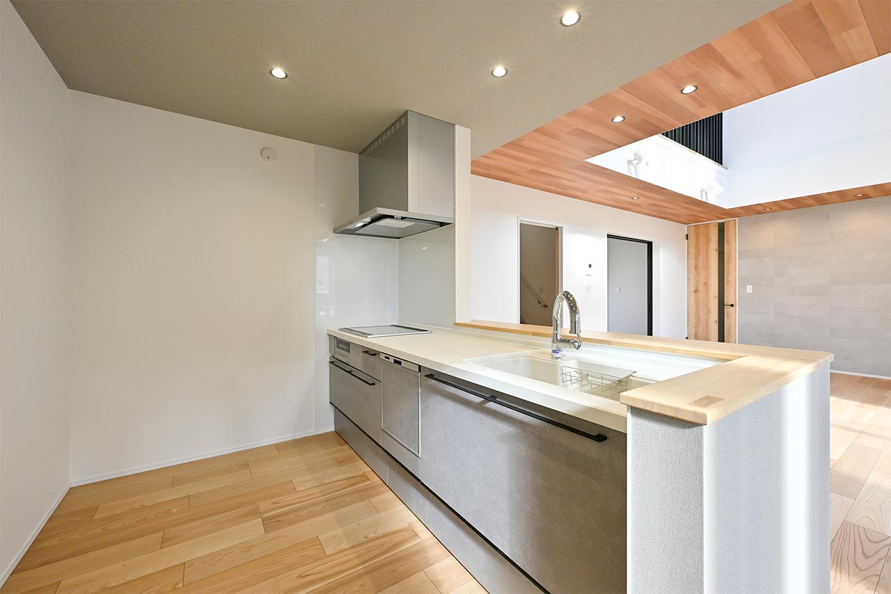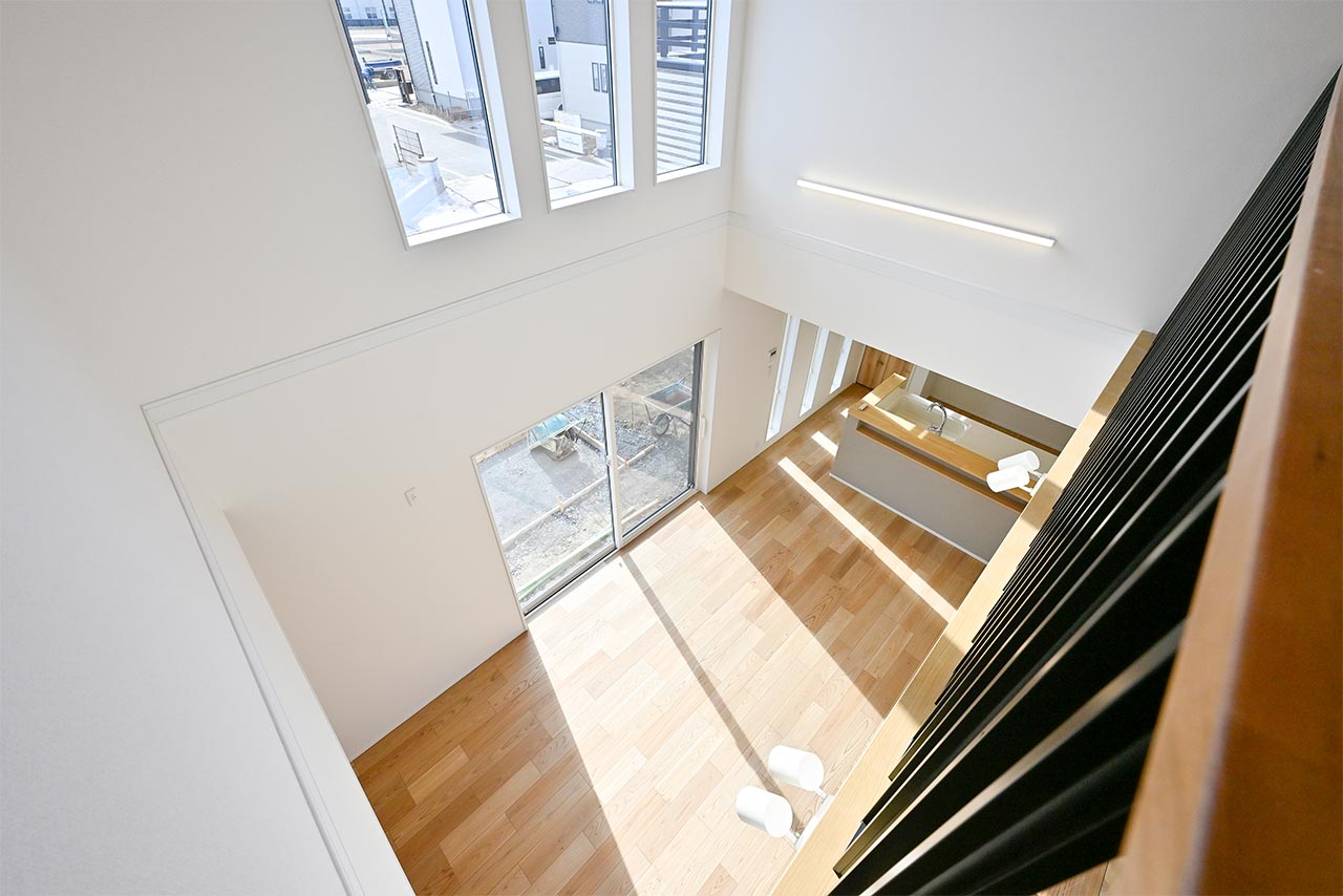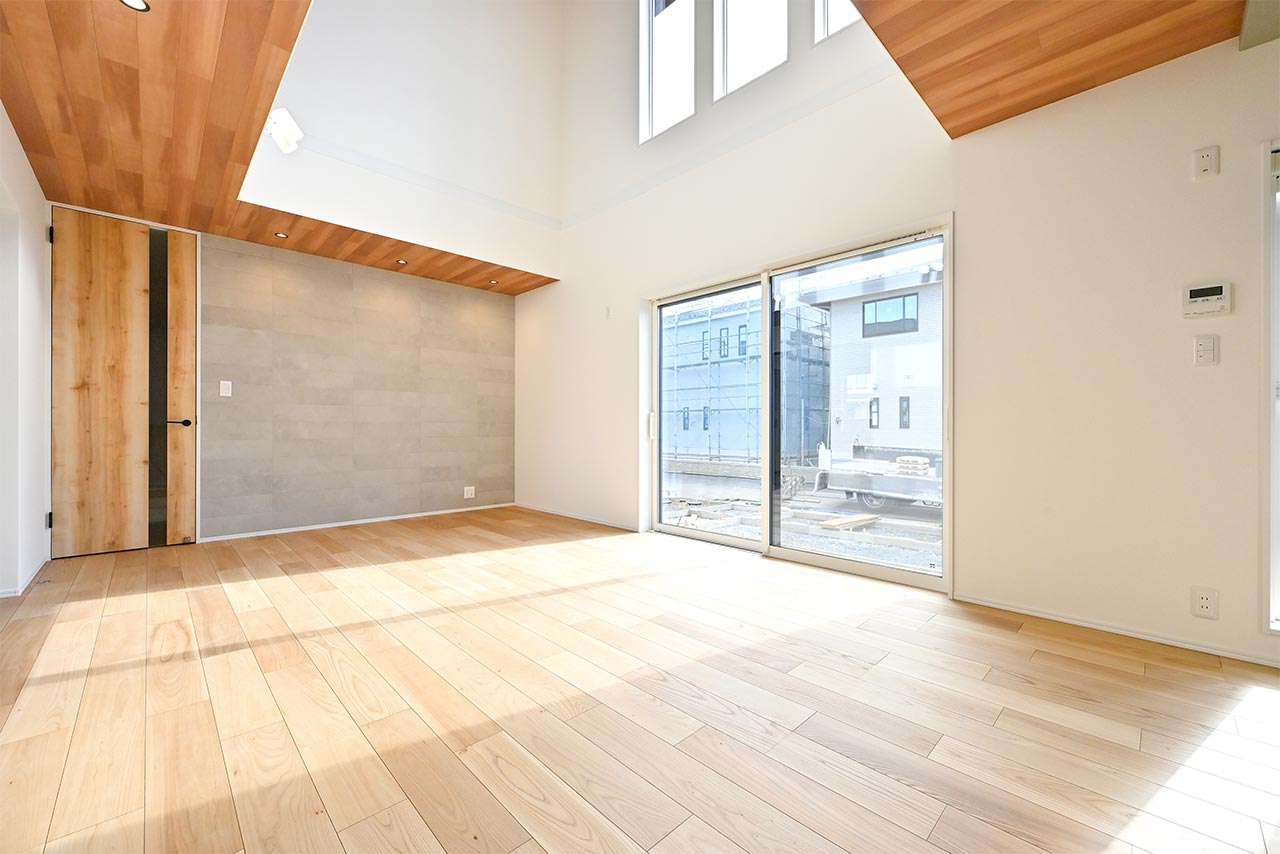 ご家族の団らんや寛ぎの中心となるリビング空間をさらに際立たせる吹抜け天井プラン。2階天井まで続くその圧倒的な存在感と広がりが訪れた方を驚きを持ってお迎えします。大切にしたいご家族やゲストをもてなす上質な空間です。