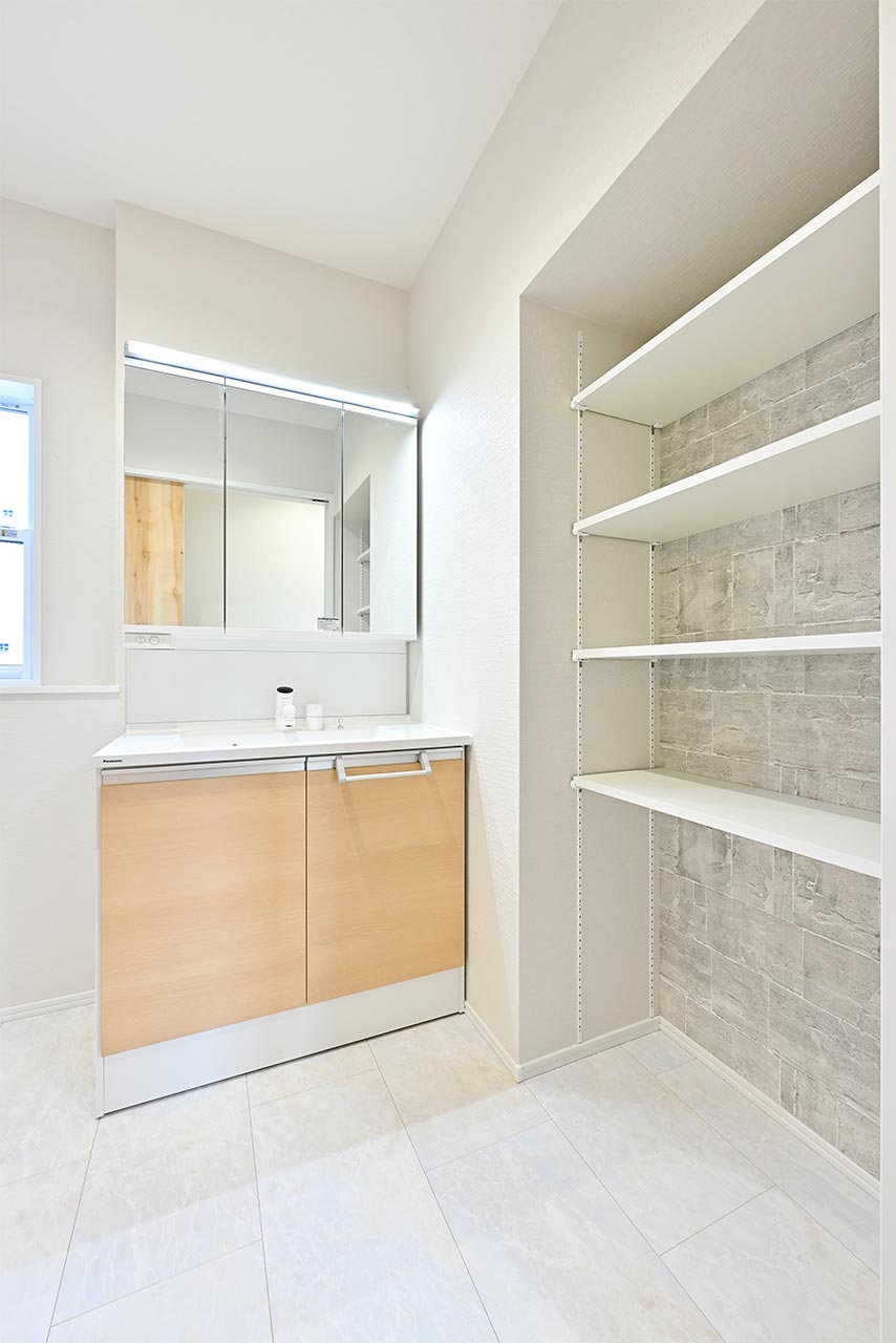 ご夫婦や子ども達の衣類をたっぷりしまえる大容量のウォークインクローゼット。季節の衣類から鞄や帽子などの小物までたっぷり保管可能。ウォークインタイプなので衣類の出し入れや整理整頓もスムーズに行えます。