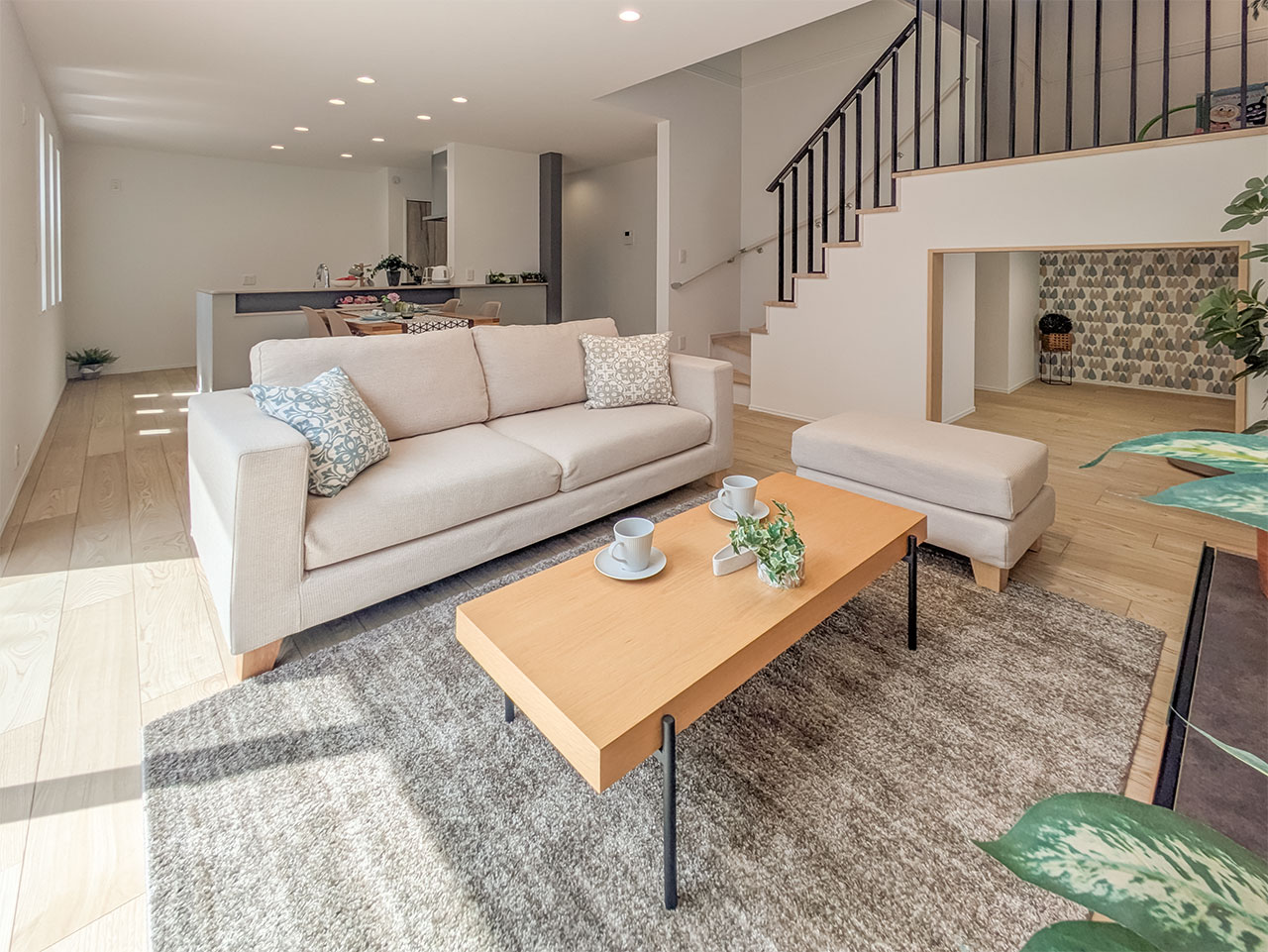 ご家族の団らんや寛ぎの中心となるリビング空間をさらに際立たせる吹抜天井プラン。2階天井まで続くその圧倒的な存在感と広がりが訪れた方を驚きを持ってお迎えします。大切にしたいご家族やゲストをもてなす上質な空間です。