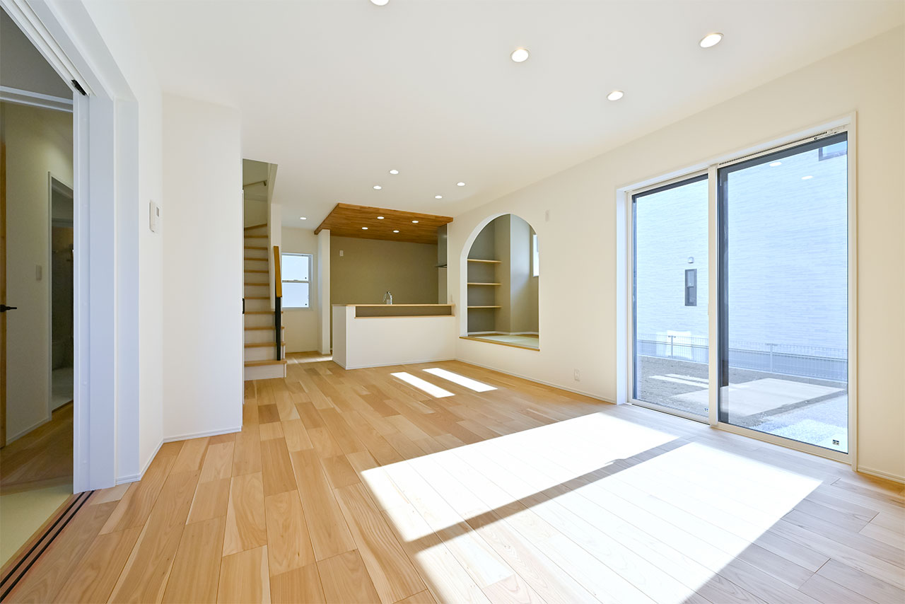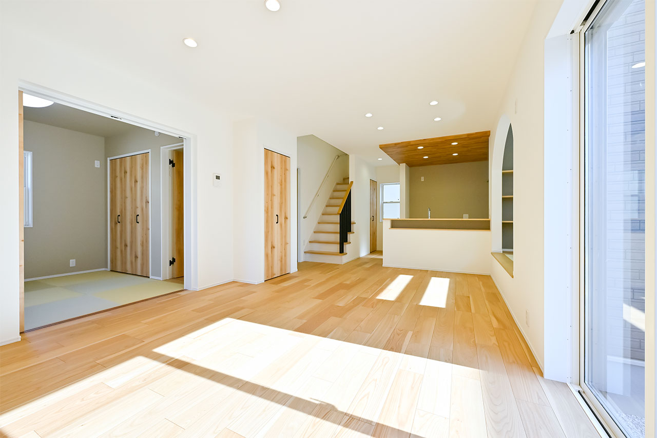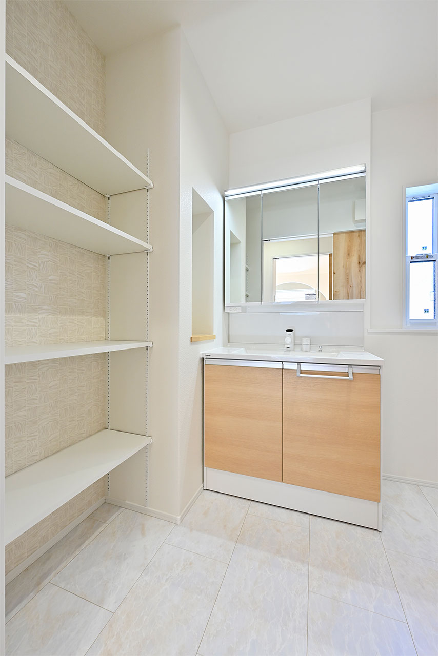 ご夫婦や子ども達の衣類をたっぷりしまえる大容量のウォークインクローゼット。季節の衣類から鞄や帽子などの小物までたっぷり保管可能。ウォークインタイプなので衣類の出し入れや整理整頓もスムーズに行えます。