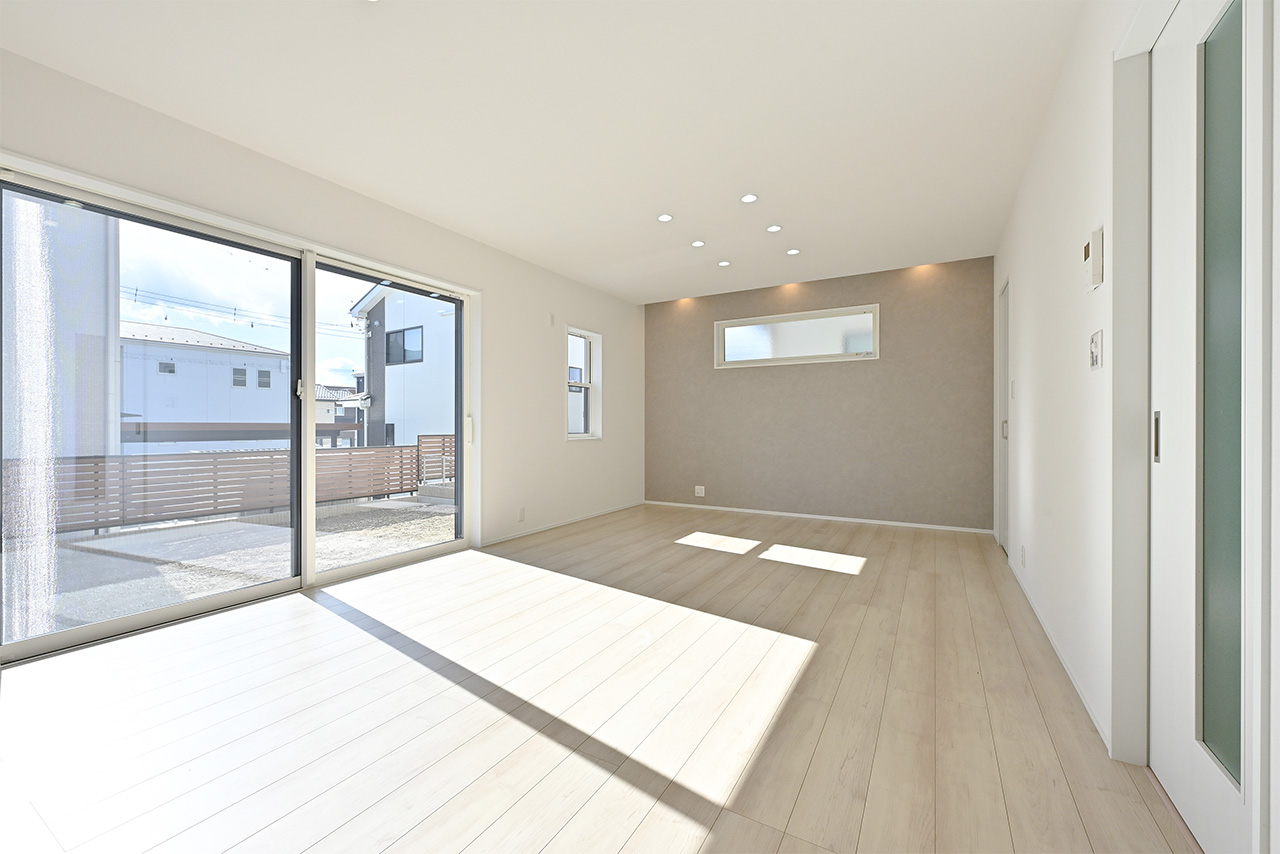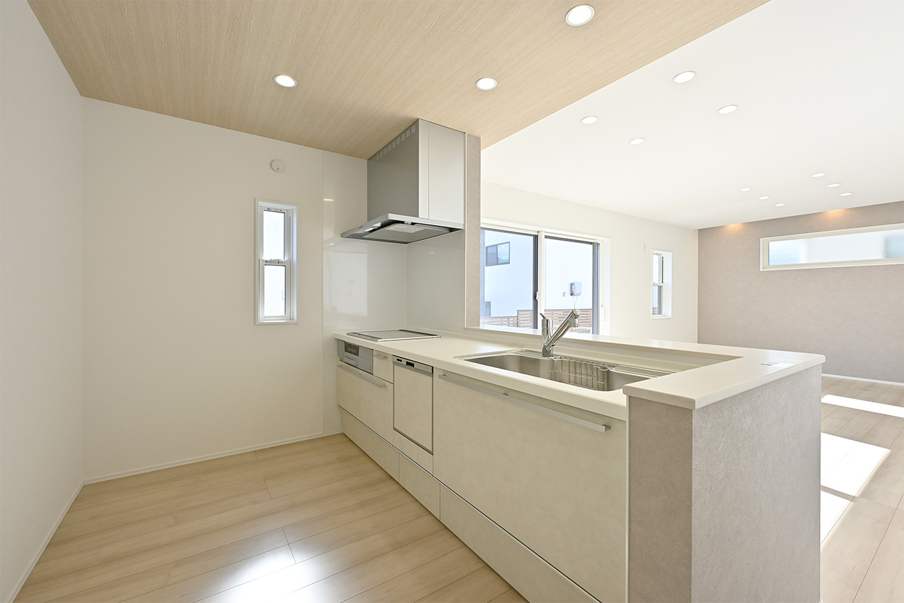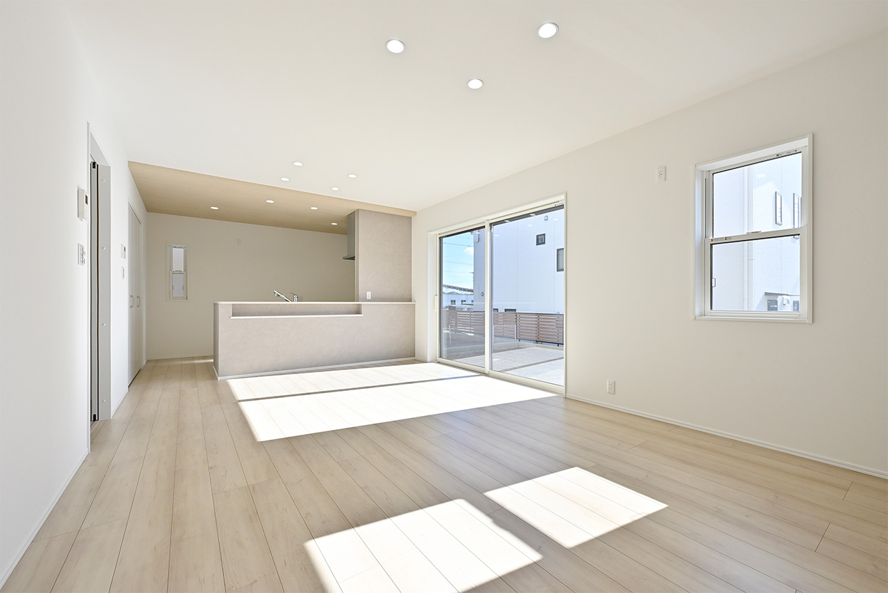 リビングという暮らしのメインスペースは、一日で家族が一番長く過ごす場所。その居心地をさらに高めるために18帖以上のワイドな広さを確保しました。広場のようなパブリックスペースがご家族の集いや団らんを心地よく育みます。
