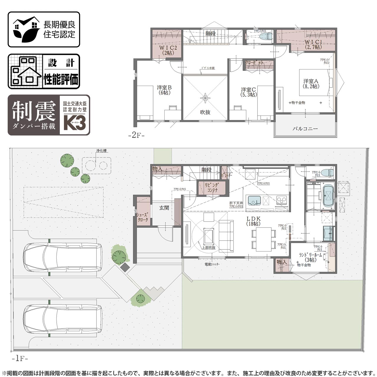 通勤やレジャーなど、ライフスタイルを広げてくれるカースペースを2台分確保しました。来客用の駐車スペースとしても最適です。