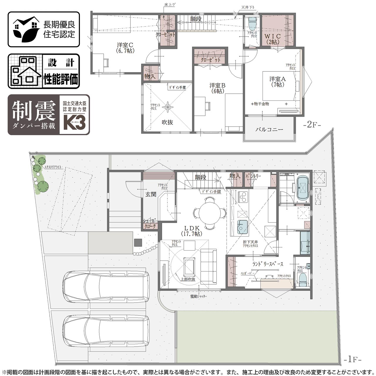 ※掲載の図面は計画段階の図面を基に描き起こしたもので、実際とは異なる場合がございます。また、施工上の理由及び改良のため変更することがございます。建売分譲住宅