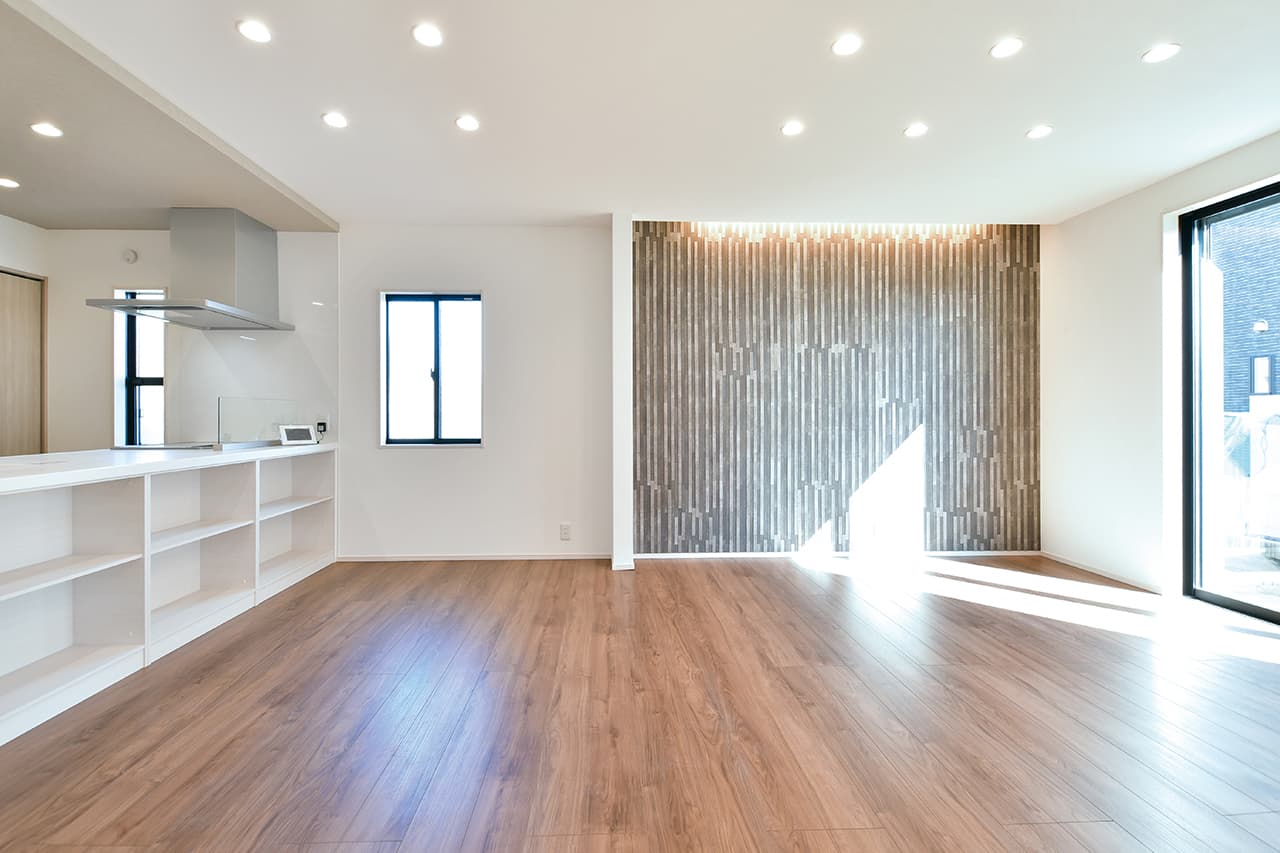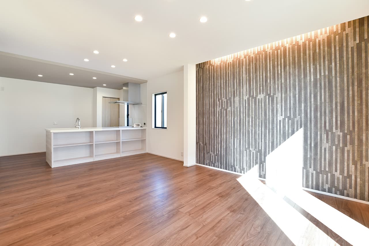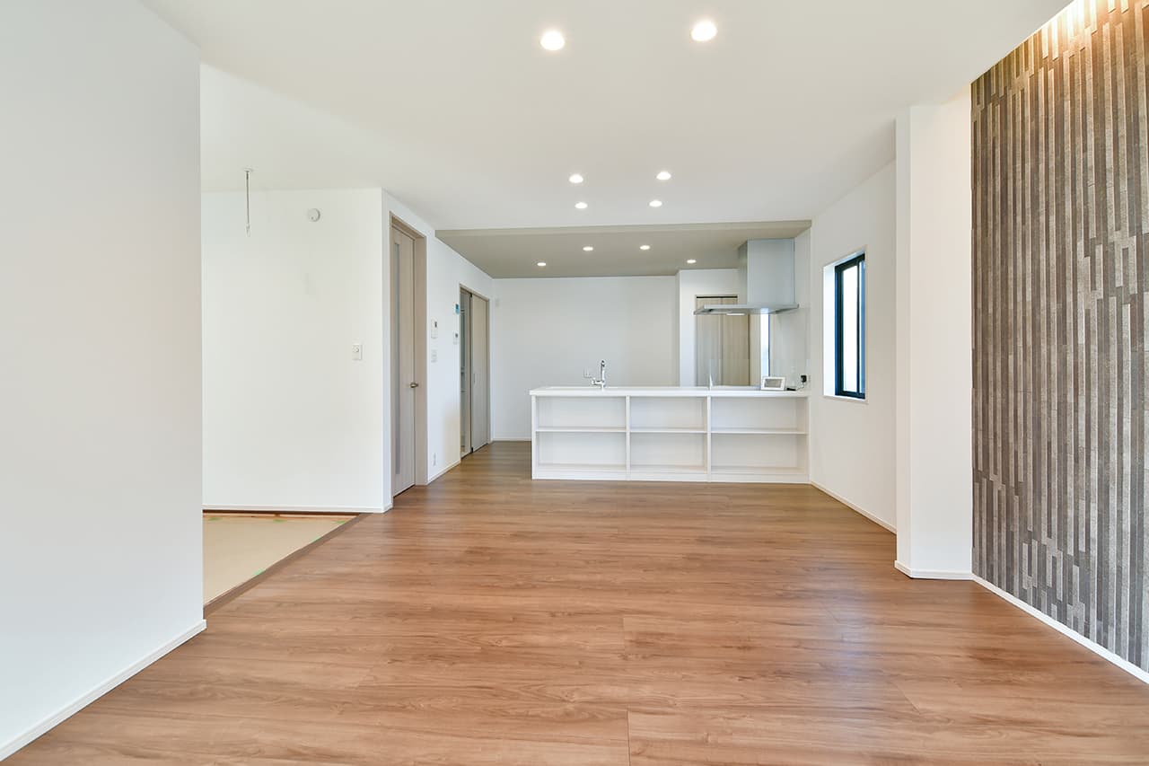 LDK空間の広さをより実感できるオープンキッチン。開放的で目線を遮るものがなくコミュニケーションが取りやすいため、料理をしながらの会話も弾み、お手伝いにも気軽に参加できます。