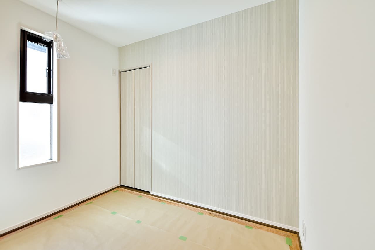 LDKと緩やかに繋がるタタミコーナー。柔らかい畳の上でお昼寝したり、子どもと寝そべって本を読み聞かせしたり、時にはお座敷スタイルで一味違うディナーを楽しんだり。ちょっと贅沢な時間を楽しめる個性的な和モダン空間です。