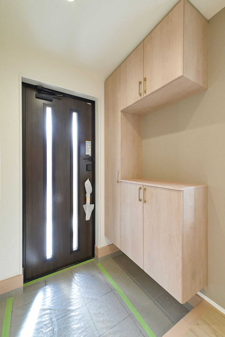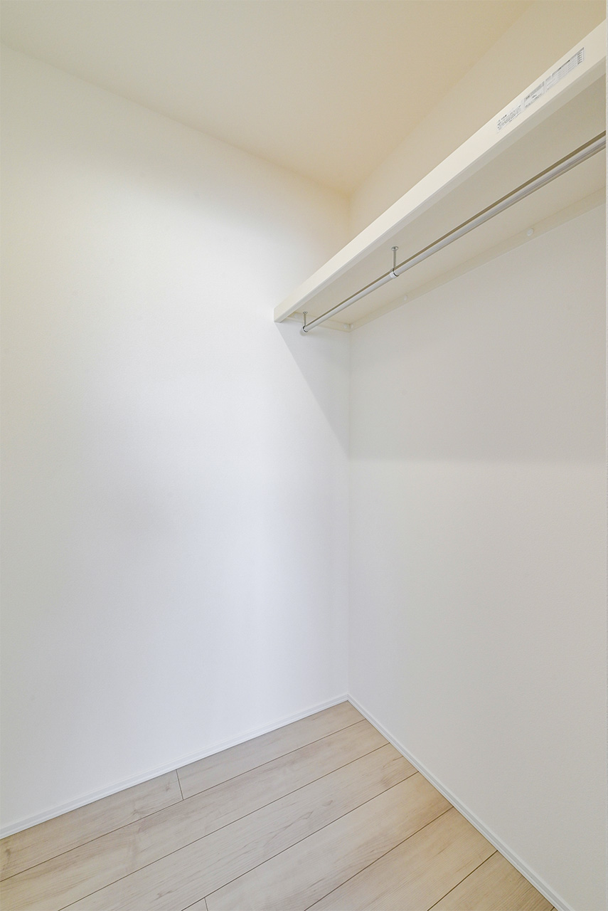 ご夫婦や子ども達の衣類をたっぷりしまえる大容量のウォークインクローゼット。季節の衣類から鞄や帽子などの小物までたっぷり保管可能。ウォークインタイプなので衣類の出し入れや整理整頓もスムーズに行えます。