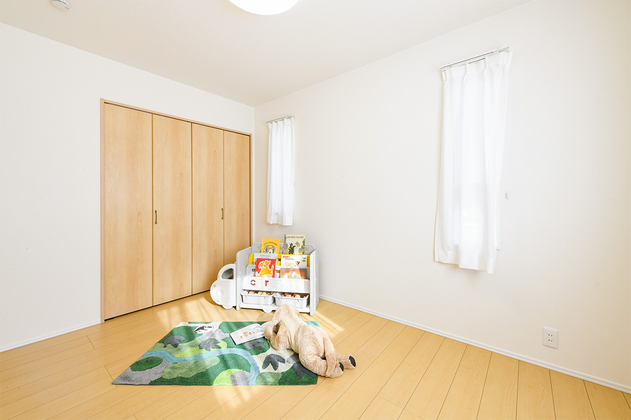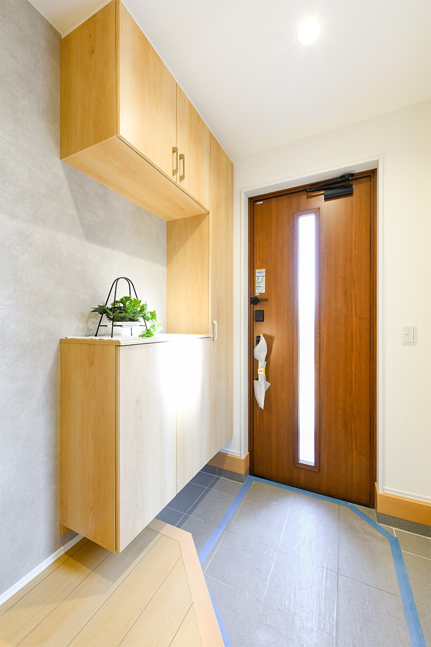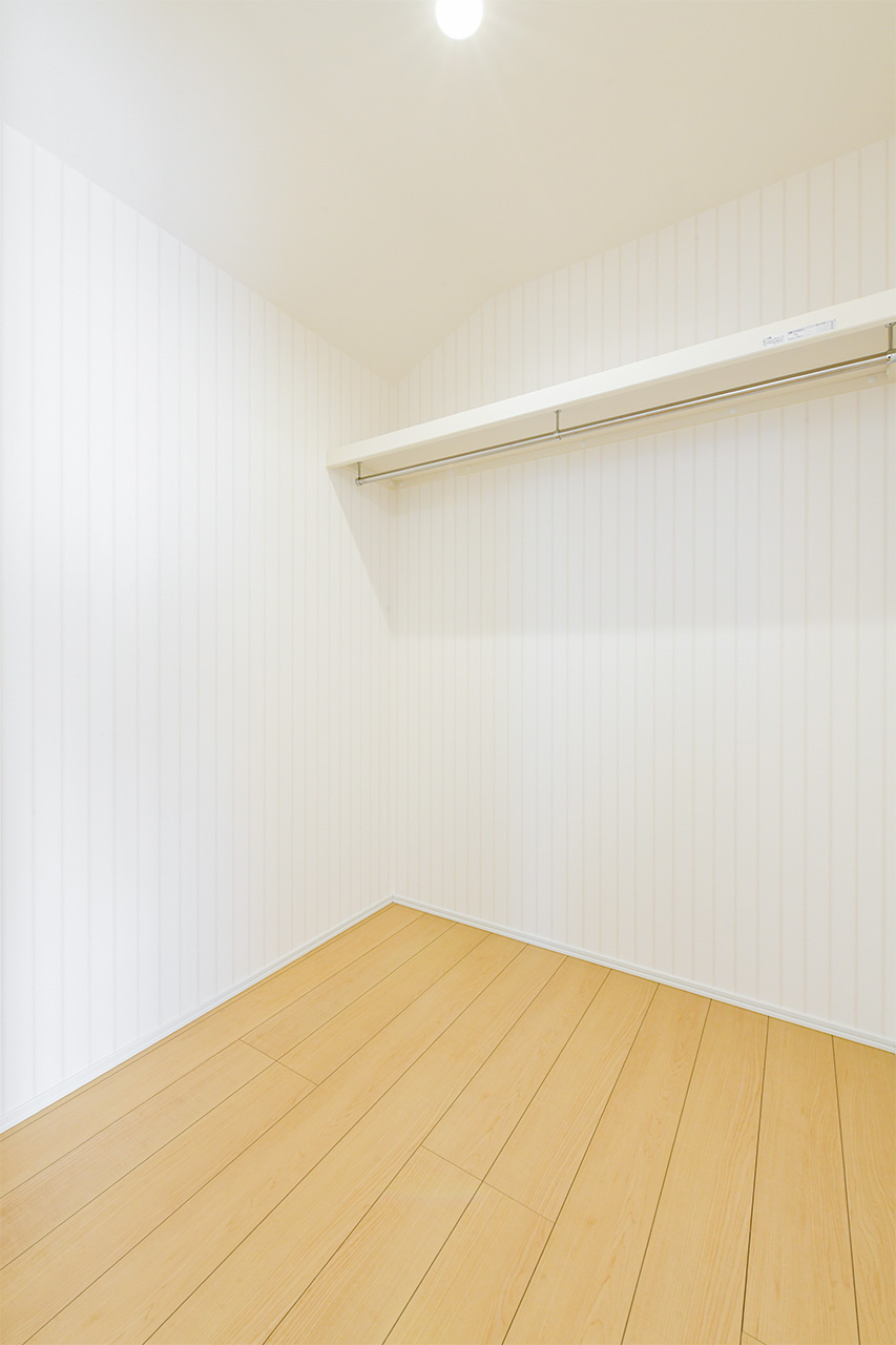 1階・2階のホールやリビングのそばに、用途やライフスタイルに合わせて自由にお使いいただける大容量の収納スペースをご用意しました。季節の衣類から鞄などの小物まで、たっぷりまとめて収納できます。