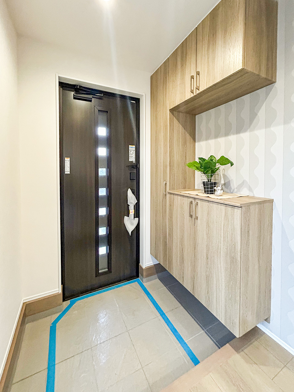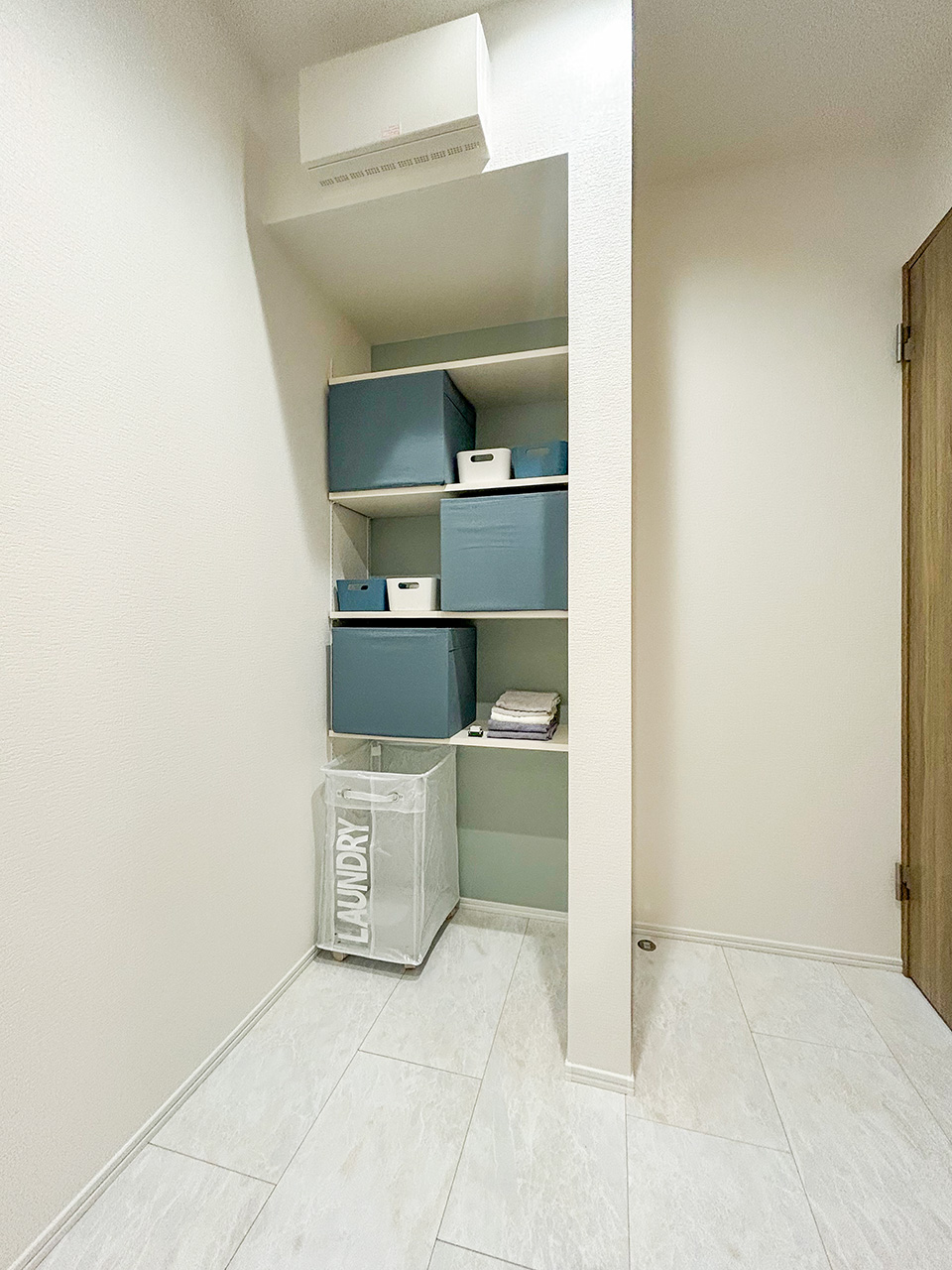 ご夫婦や子ども達の衣類をたっぷりしまえる大容量のウォークインクローゼット。季節の衣類から鞄や帽子などの小物までたっぷり保管可能。ウォークインタイプなので衣類の出し入れや整理整頓もスムーズに行えます。