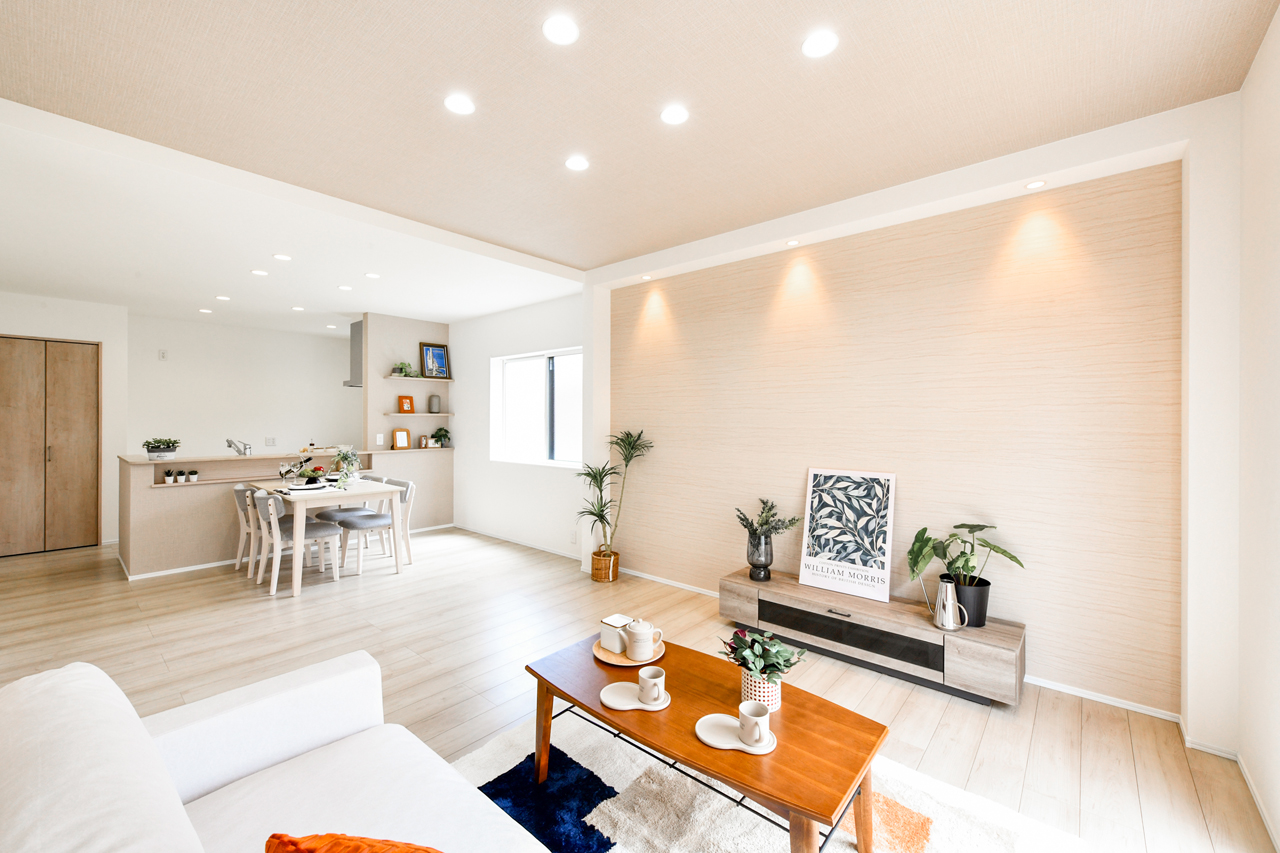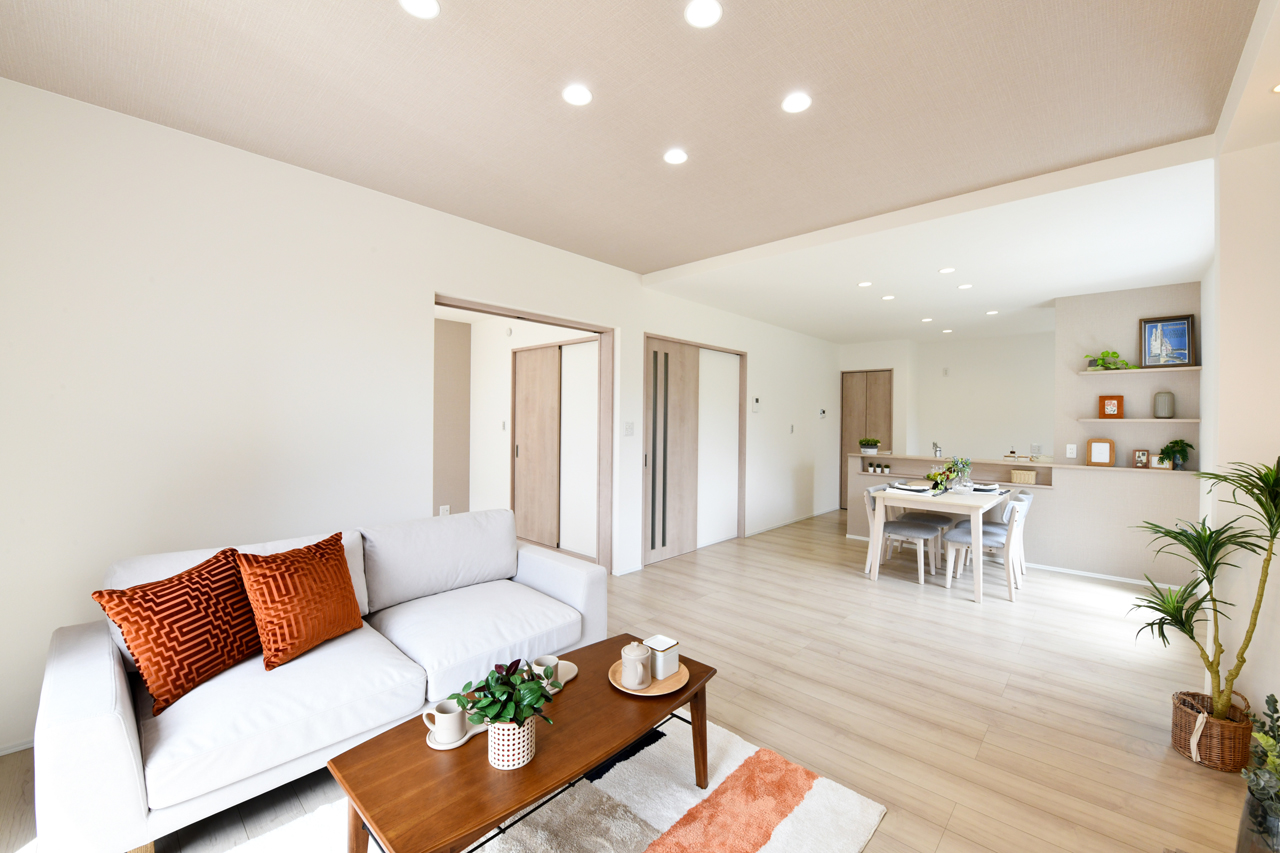 リビングという暮らしのメインスペースは、一日で家族が一番長く過ごす場所。その居心地をさらに高めるために18帖以上のワイドな広さを確保しました。広場のようなパブリックスペースがご家族の集いや団らんを心地よく育みます。