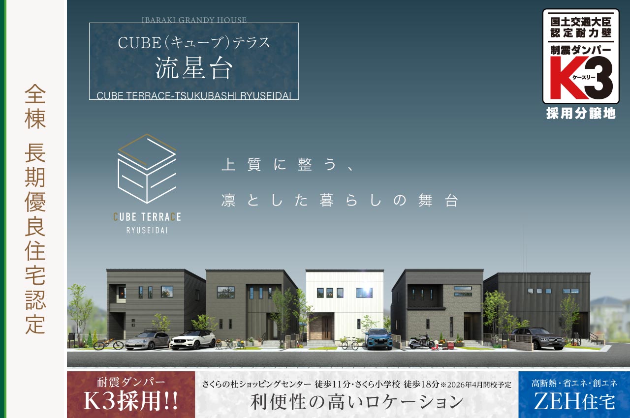 北側道路の住まいのメリット|茨城グランディハウス 6件の分譲地、13件のプランが見つかりました。 エリア絞込: すべて 水戸市 土浦市 つくば市 ひたちなか市 すべての物件にチェックを入れる すべてチェック 物件をくらべる まとめて資料請求する 0件の分譲地 物件をくらべる(5件まで) まとめて資料請求する(5件まで) 新着 つくば市 流星台 CUBEテラス流星台 【長期優良住宅認定 ✕ K3制震ダンパー採用】 ◆太陽光発電×おひさまエコキュート採用のZEH住宅 ◆さくらの杜ショッピングセンター 徒歩11分 ◆デザイン性と機能性に優れた良質な設備仕様 販売戸数:5戸 お気に入り登録人数1人 お気に入り登録 販売価格 4,980万円 (税込) 〜 沿線&最寄り駅 つくばエクスプレス|つくば駅 約2,800m 〜 約2,840m つくバス|桜窓口センター入口停留所 徒歩 14分( 約1,100m ) 〜 徒歩 15分( 約1,140m ) 小学校区 さくら小学校,九重小学校 土地面積 186.10㎡(56.29坪)〜 203.74㎡(61.63坪) 建物面積 112.61㎡(34.00坪)〜 115.37㎡(34.83坪) 入居予定時期 2026年4月上旬 動画 太陽光発電搭載 ZEH オール電化 来場予約 資料請求(無料) 電話相談 お問い合わせ 茨城グランディハウス つくば支店 つくば市学園の森2丁目16番4 0120075886(発信する) 閉じる 分譲地詳細を見る プラン詳細・間取り(5件) 新着 動画 1号地 ホームパーティーに招きたくなる、20帖の広々LDKの家 販売価格 5,080万円(税込) 土地面積 203.74㎡(61.63坪) 建物面積 112.61㎡(34.00坪) シューズクローク 階段下収納 ウォークインクローゼット インナーバルコニー リネン庫 パントリー LDK18帖以上 2階フレキシブル 間接照明 駐車場2台以上 電動シャッター タッチレス水栓 玄関電子錠 角地 2階4部屋 制震ダンパー「K3」 新着 2号地 趣味や読書、お子様のお昼寝などに。和の癒し空間がある家 販売価格 4,980万円(税込) 土地面積 186.35㎡(56.37坪) 建物面積 112.61㎡(34.00坪) 独立洗面 リネン庫 シューズクローク ウォークインクローゼット パントリー 間接照明 駐車場2台以上 電動シャッター タッチレス水栓 玄関電子錠 制震ダンパー「K3」 新着 3号地 外と中を緩やかにつなぐテラスのある家 販売価格 4,980万円(税込) 土地面積 186.10㎡(56.29坪) 建物面積 112.61㎡(34.00坪) テラス 家事動線 LDK18帖以上 シューズクローク ウォークインクローゼット リネン庫 パントリー 間接照明 階段下収納 駐車場2台以上 電動シャッター タッチレス水栓 玄関電子錠 2階4部屋 制震ダンパー「K3」 新着 4号地 大きな物もしっかり収納。納戸のある家 販売価格 4,980万円(税込) 土地面積 186.20㎡(56.32坪) 建物面積 115.37㎡(34.83坪) 納戸 エントランスクローク シューズクローク 家事動線 ウォークインクローゼット インナーバルコニー パントリー 間接照明 駐車場2台以上 電動シャッター タッチレス水栓 玄関電子錠 制震ダンパー「K3」 新着 5号地 日用品が1つにまとまるリビングコンテナのある家 販売価格 4,980万円(税込) 土地面積 186.27㎡(56.34坪) 建物面積 114.27㎡(34.50坪) リビングコンテナ LDK18帖以上 シューズクローク ウォークインクローゼット 階段下収納 インナーバルコニー リネン庫 パントリー 間接照明 駐車場2台以上 電動シャッター タッチレス水栓 玄関電子錠 2階4部屋 制震ダンパー「K3」 新着 ひたちなか市 東石川一丁目 グランエクセラ勝田駅東 【駅徒歩8分の駅近立地 × K3制震ダンパー採用】 ◆JR常磐線「勝田」駅へ徒歩8分、公園も間近と利便と穏やかさが重なる街 ◆東石川小学校・ひたちなか市立中央図書館へ徒歩4分 ◆前面道路8mの開放感 ◆ZEH水準の断熱・省エネルギー性能 × オール電化住宅 ◆耐震等級3 × K3制震ダンパー採用 ◆60年保証・サポートシステム 販売戸数:4戸 お気に入り登録人数人 お気に入り登録 販売価格 3,680万円 (税込) 〜 沿線&最寄り駅 JR常磐線・ひたちなか海浜鉄道|勝田駅 徒歩 8分( 約600m ) 〜 徒歩 8分( 約630m ) スマイルあおぞらバス|西久保公園停留所 徒歩 2分( 約130m ) 〜 徒歩 2分( 約160m ) 小学校区 東石川小学校 土地面積 168.31㎡(50.91坪)〜 205.07㎡(62.03坪) 建物面積 112.62㎡(34.00坪)〜 115.77㎡(34.94坪) 入居予定時期 2026年4月上旬 駅近 学近 オール電化 来場予約 資料請求(無料) 電話相談 お問い合わせ 茨城グランディハウス ひたちなか支店 ひたちなか市笹野町1丁目9-25 アーバンスポットビル1階 0120513322(発信する) 閉じる 分譲地詳細を見る プラン詳細・間取り(3件) 新着 2号地 20.9帖の開放的なLDKや2階に4部屋備えたゆとりの家族時間を育む住まい 販売価格 3,680万円(税込) 土地面積 168.31㎡(50.91坪) 建物面積 113.30㎡(34.20坪) LDK18帖以上 ファミリーコーナー ウォークインクローゼット パントリー リネン庫 2階4部屋 駐車場2台以上 電動シャッター 玄関電子錠 制震ダンパー「K3」 新着 3号地 空間を整える大型収納や畳敷の癒し空間など、暮らしの質を高める家 販売価格 3,830万円(税込) 土地面積 184.10㎡(55.69坪) 建物面積 115.03㎡(34.73坪) LDK18帖以上 ファミリーコーナー ウォークインクローゼット 納戸 パントリー リネン庫 シューズクローク 広々エントランス 駐車場2台以上 電動シ