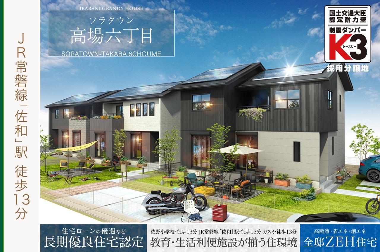 ZEH(ネット・ゼロ・エネルギー・ハウス)特集| 13件の分譲地、35件のプランが見つかりました。 【ZEH特集】太陽光発電システム搭載(ネット・ゼロ・エネルギーハウス) エリア絞込: すべて 水戸市 那珂郡東海村 つくば市 ひたちなか市 稲敷郡阿見町 すべての物件にチェックを入れる すべてチェック 物件をくらべる まとめて資料請求する 0件の分譲地 物件をくらべる(5件まで) まとめて資料請求する(5件まで) つくば市 流星台 CUBEテラス流星台 お気に入り登録人数1人 販売戸数: 5戸 販売価格: 4,980万円 (税込) 〜 1・2・3・4・5号棟|子育てグリーン対象 【長期優良住宅認定 ✕ K3制震ダンパー採用】 ◆太陽光発電×おひさまエコキュート採用のZEH住宅 ◆さくらの杜ショッピングセンター 徒歩11分 ◆デザイン性と機能性に優れた良質な設備仕様 来場予約 資料請求(無料) 電話相談 お問い合わせ 茨城グランディハウス つくば支店 つくば市学園の森2丁目16番4 0120075886(発信する) 閉じる 分譲地詳細を見る モデルハウス 水戸市 住吉町 グランビートパーク住吉町 お気に入り登録人数1人 販売戸数: 2戸 販売価格: 3,340万円 (税込) 〜 1・6号棟|子育てグリーン対象 【長期優良住宅認定 ✕ K3制震ダンパー採用】 ◆「ヨークタウン水戸」まで車8分、「イオンタウン水戸南」まで車11分 ◆太陽光発電システム搭載「ZEH住宅」(1号地) ◆平屋モデルハウス建築予定(1号地) ◆ZEH水準の断熱・省エネ性能 × オール電化 来場予約 資料請求(無料) 電話相談 お問い合わせ 茨城グランディハウス 水戸本社 水戸市けやき台3丁目56番地 0120472020(発信する) 閉じる 分譲地詳細を見る 価格改定 つくば市 東光台三丁目 ソラタウンつくば市学園の森西【1st街区】 お気に入り登録人数4人 販売戸数: 1戸 販売価格: 4,480万円 (税込) 10号棟|子育てグリーン対象 【価格改定】建物完成!すぐにご内覧頂けます。 ◆つくばエクスプレス「研究学園」駅 自転車10分※実測 ◆学園の森エリアの商業施設を普段使いできる充実した立地 ◆くつろぎの空間をより豊かにする上質な設備を採用 来場予約 資料請求(無料) 電話相談 お問い合わせ 茨城グランディハウス つくば支店 つくば市学園の森2丁目16番4 0120075886(発信する) 閉じる 分譲地詳細を見る つくば市 東光台三丁目 ソラタウンつくば市学園の森西【Final街区】 お気に入り登録人数1人 販売戸数: 2戸 販売価格: 5,180万円 (税込) 〜 1・14号棟|子育てグリーン対象 建物続々完成! すぐにご内覧頂けます!! ◆つくばエクスプレス「研究学園」駅 自転車10分※実測 ◆学園の森エリアの商業施設を普段使いできる充実した立地 ◆くつろぎの空間をより豊かにする上質な設備を採用 来場予約 資料請求(無料) 電話相談 お問い合わせ 茨城グランディハウス つくば支店 つくば市学園の森2丁目16番4 0120075886(発信する) 閉じる 分譲地詳細を見る 価格改定 つくば市 東光台三丁目 ソラタウンつくば市学園の森西【プレミアム街区】 お気に入り登録人数1人 販売戸数: 1戸 販売価格: 4,980万円 (税込) 3号棟|子育てグリーン対象 学園の森エリア ✕ ZEH住宅全15邸 価格改定物件公開! ◆つくばエクスプレス「研究学園」駅 自転車10分※実測 ◆学園の森エリアの商業施設を普段使いできる充実した立地 ◆くつろぎの空間をより豊かにする上質な設備を採用 来場予約 資料請求(無料) 電話相談 お問い合わせ 茨城グランディハウス つくば支店 つくば市学園の森2丁目16番4 0120075886(発信する) 閉じる 分譲地詳細を見る つくば市 島名 BlackCourtつくば市香取台 お気に入り登録人数人 販売戸数: 3戸 販売価格: 5,080万円 (税込) 〜 【太陽光発電 × おひさまエコキュート採用のZEH住宅】 ◆万博記念公園駅を中心に伸びやかな環境の整備が進む区画整理地の端正な街並み ◆全棟55.35坪のゆとりある敷地にガーデンスペースを有する限定3邸 ◆車の出し入れしやすい6m幅道路確保 ◆メラミンワークトップ採用|上質デザイン&高機能素材のキッチン設備 ◆太陽光発電システム搭載のZEH住宅 × オール電化 ◆国土交通大臣認定「制震ダンパーK3」採用 来場予約 資料請求(無料) 電話相談 お問い合わせ 茨城グランディハウス つくば支店 つくば市学園の森2丁目16番4 0120075886(発信する) 閉じる 分譲地詳細を見る 新着 モデルハウス つくば市 下河原崎 DiningCourtつくば市万博記念公園西 お気に入り登録人数1人 販売戸数: 4戸 販売価格: 4,180万円 (税込) 〜 『ちょっと広い』じゃ足りない人へ。20帖超〈メガリビ〉LDK。 【太陽光発電 × おひさまエコキュート採用のZEH住宅】 ◆つくばエクスプレス「万博記念公園」駅 自転車10分※実測 ◆商業施設やスマートICなど新たな街づくりが進む区画整理事業地 ◆家事効率UPの動線設計や多彩な収納など暮らしを整える邸別プラン ◆太陽光発電システム搭載のZEH住宅 × オール電化 ◆国土交通大臣認定「制震ダンパーK3」採用 来場予約 資料請求(無料) 電話相談 お問い合わせ 茨城グランディハウス つくば支店 つくば市学園の森2丁目16番4 0120075886(発信する) 閉じる 分譲地詳細を見る 価格