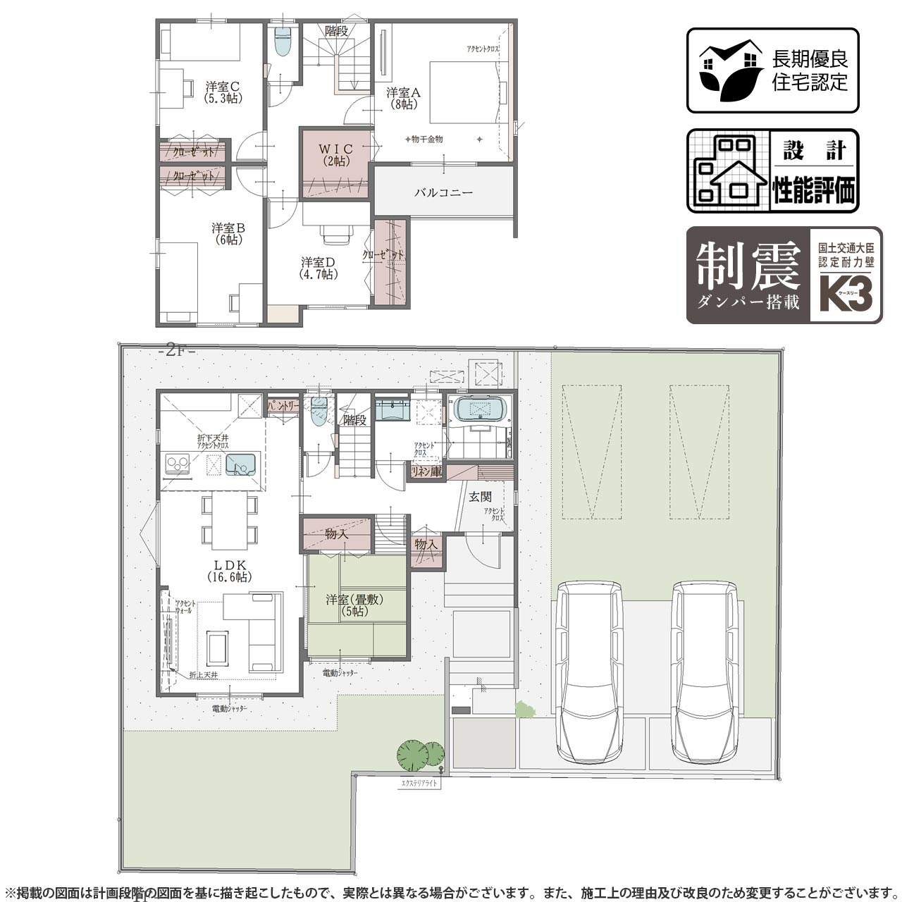 2階に居室を4部屋確保しプライベートを充実させる5LDKプラン。多様化する過ごし方や働き方にも柔軟に対応します。