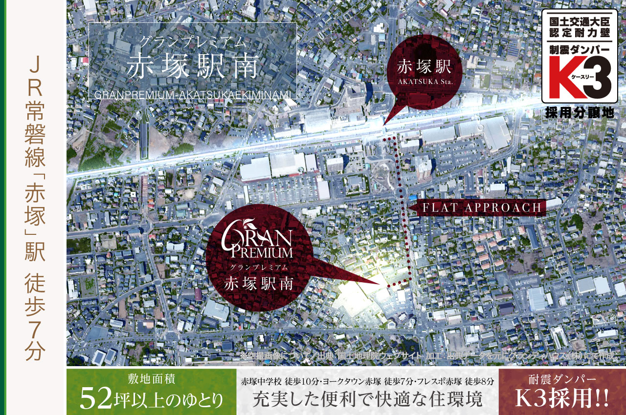 - 分譲地から各施設への距離・徒歩時間は、GoogleMapの徒歩ルートを基に徒歩1分=80mにて算出しています。