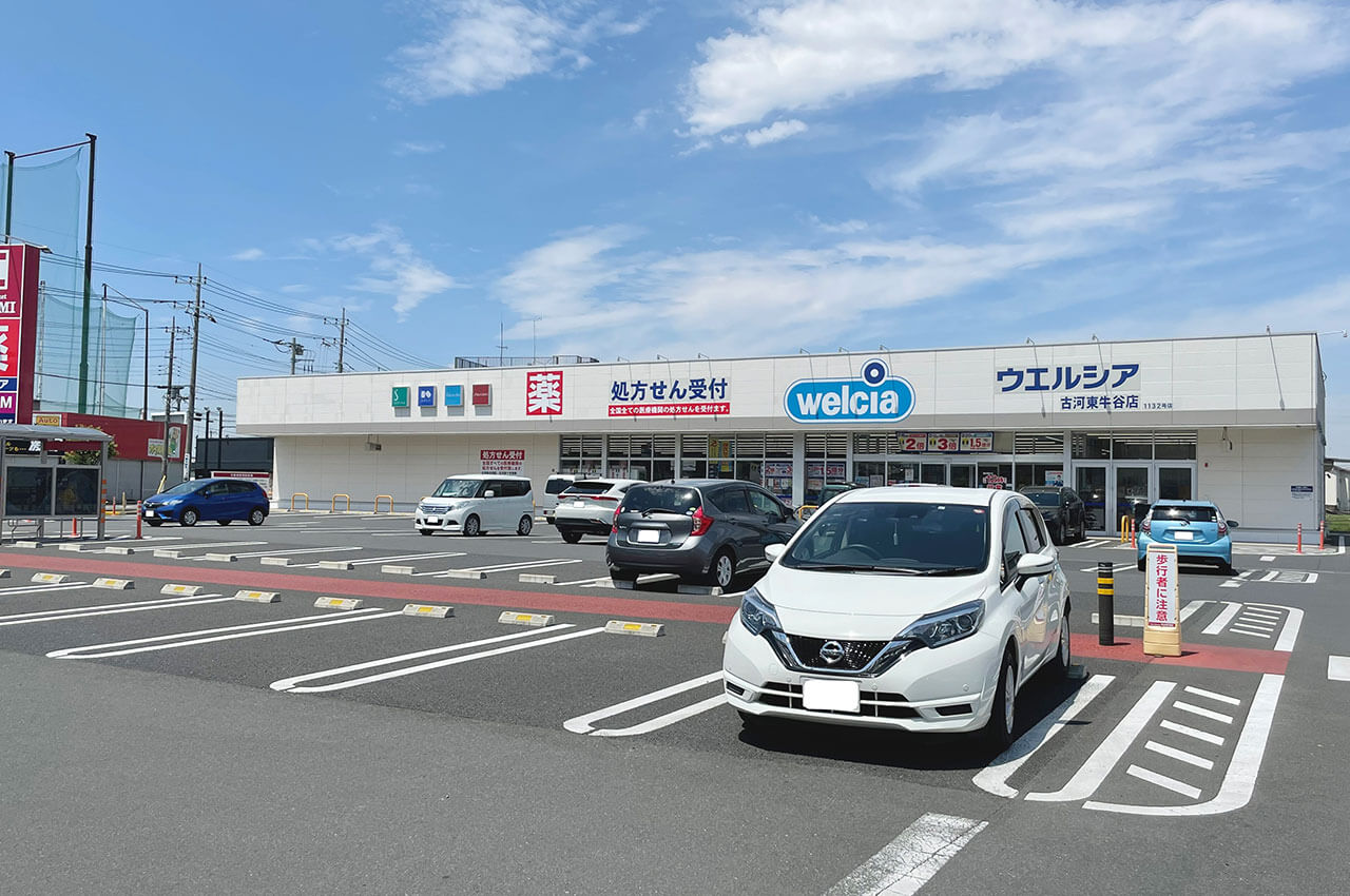 普段のお買い物に便利な食品スーパー「カスミ」や「ウエルシア」、