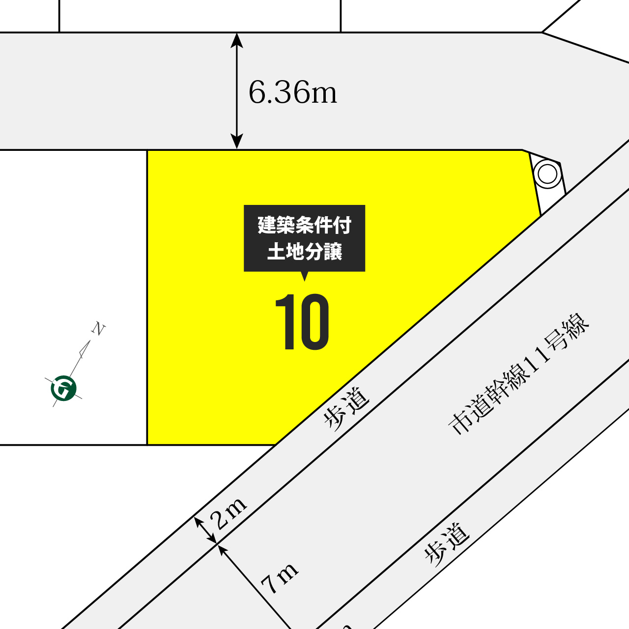 - 分譲地は地図中心の黄色のピンに位置します。(実際の位置から多少ずれることがあります)