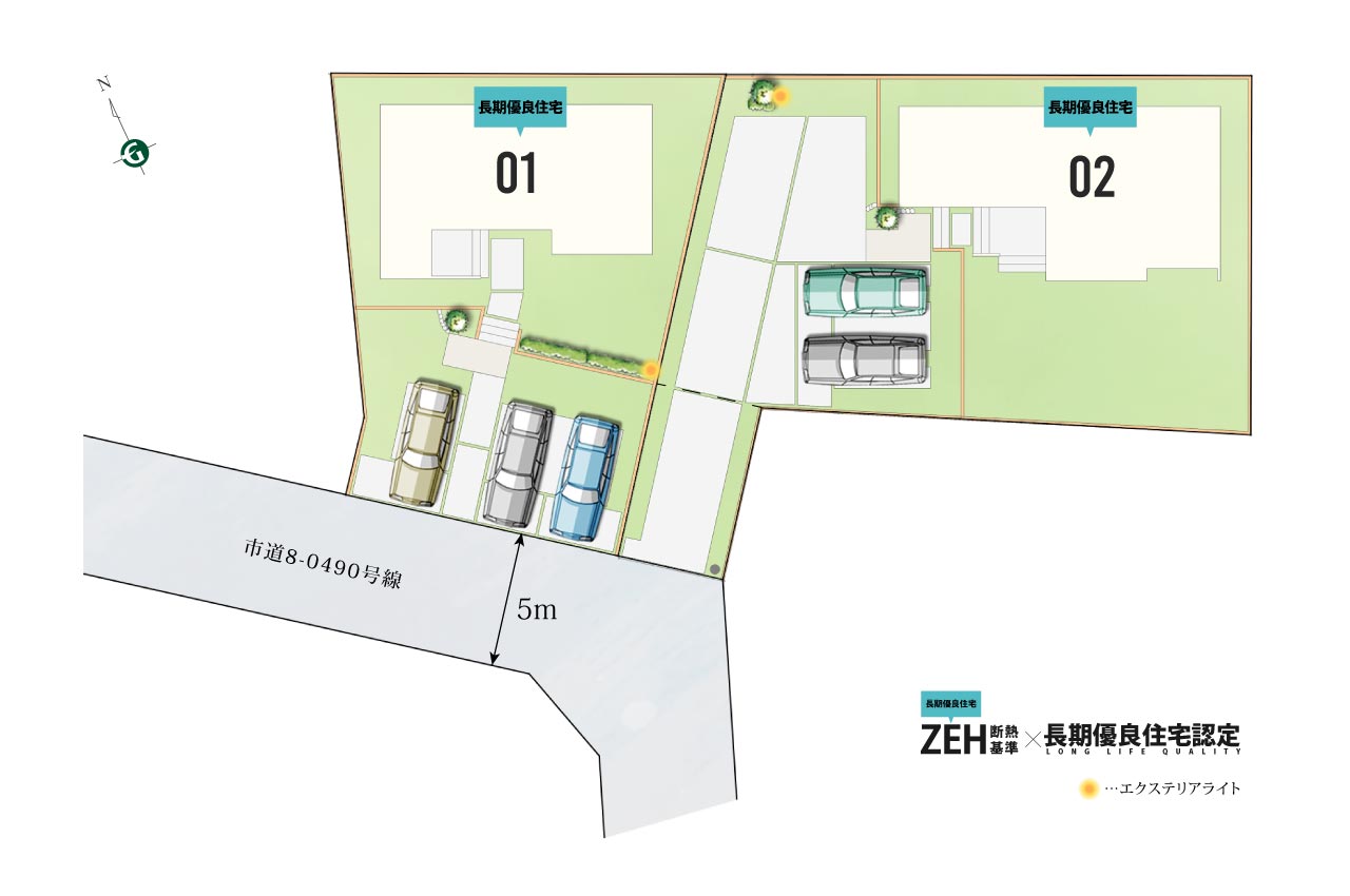 通勤やレジャーなど、ライフスタイルを広げてくれるカースペースを2台分確保しました。来客用の駐車スペースとしても最適です。