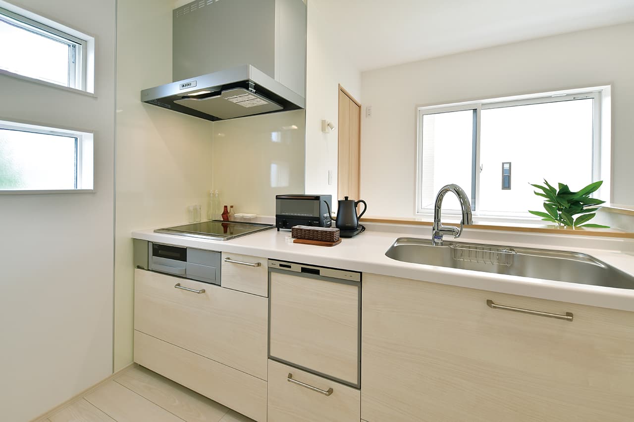 ビルトインタイプ食器洗い乾燥機なら、カウンター上はいつもすっきりで、今まで手洗いにかけていた時間をご家族との時間に使えます。