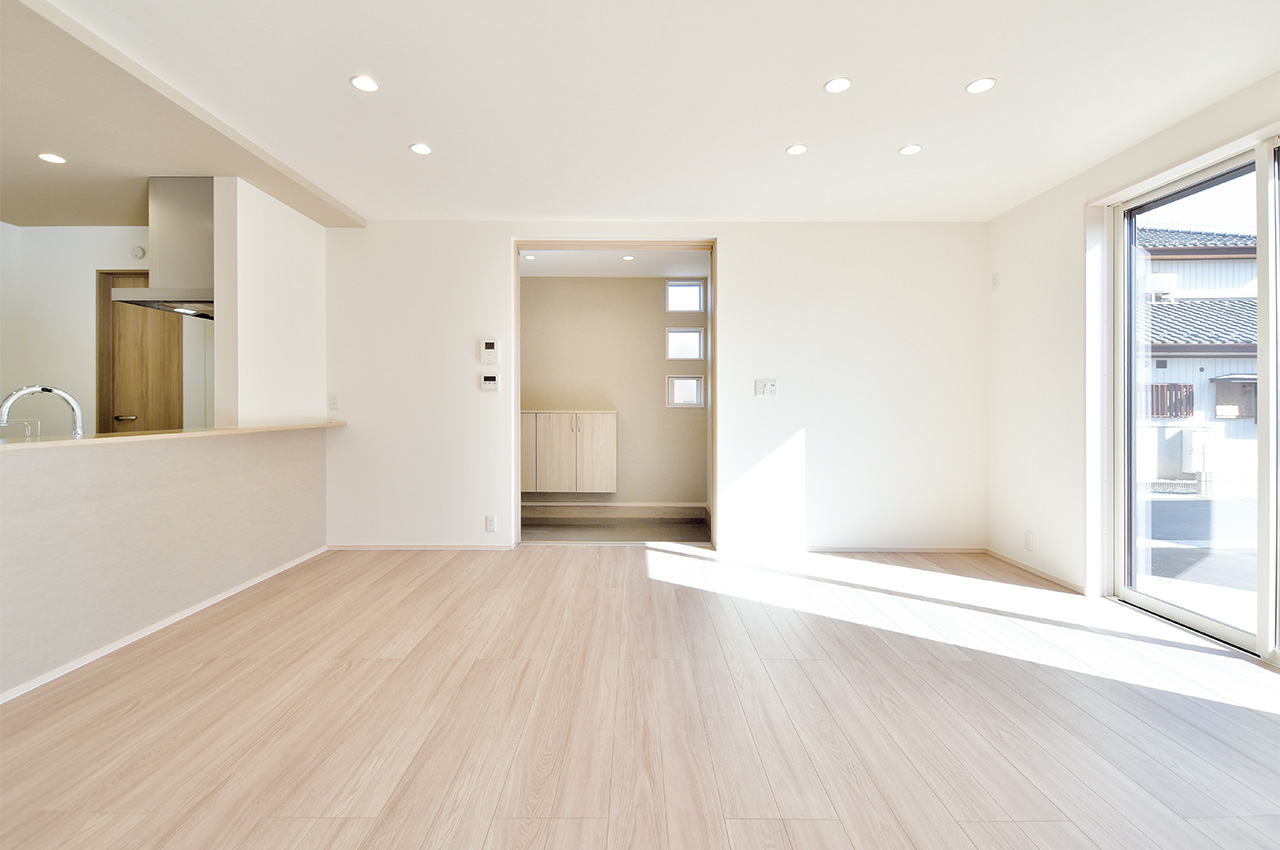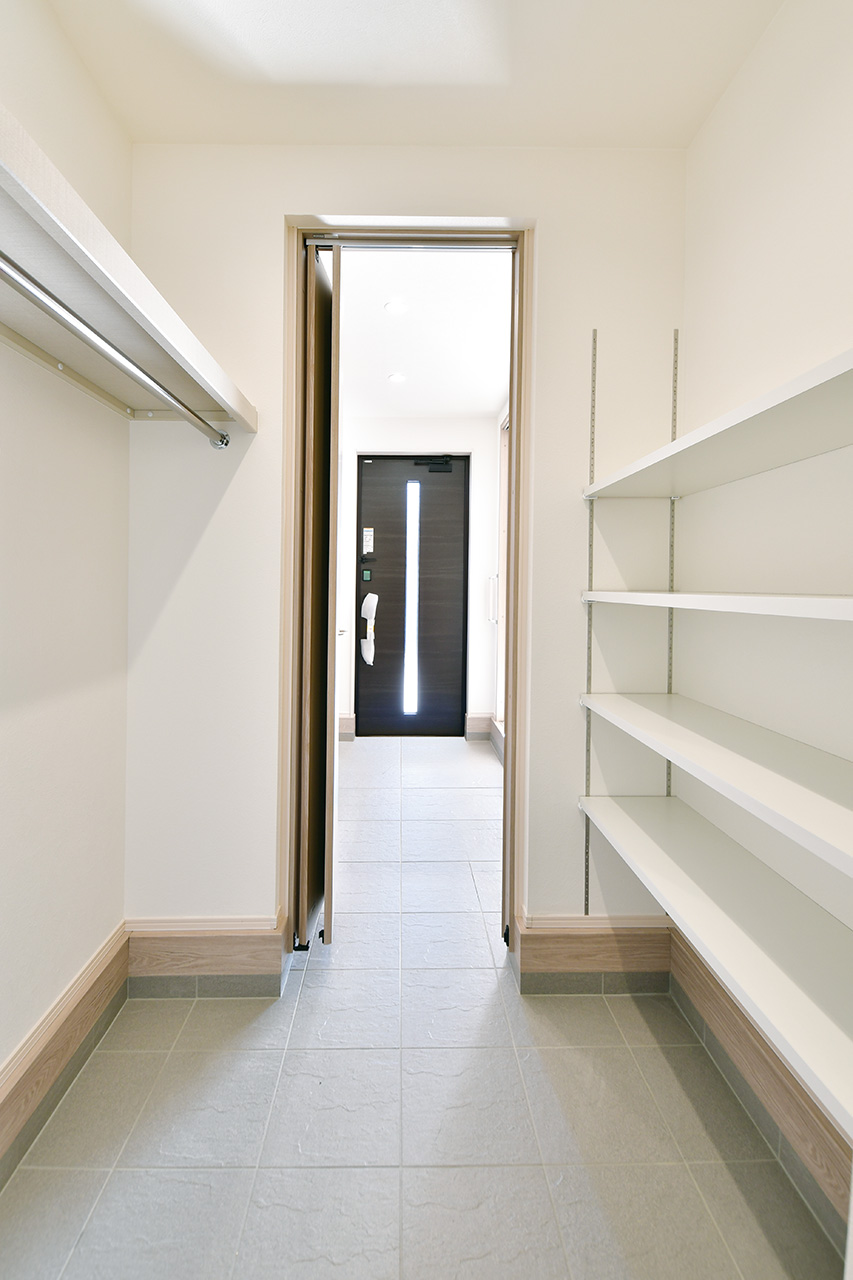 シューズクロークとパントリーを一体的に配置。玄関からキッチンを繋ぐスムーズ動線の住まい