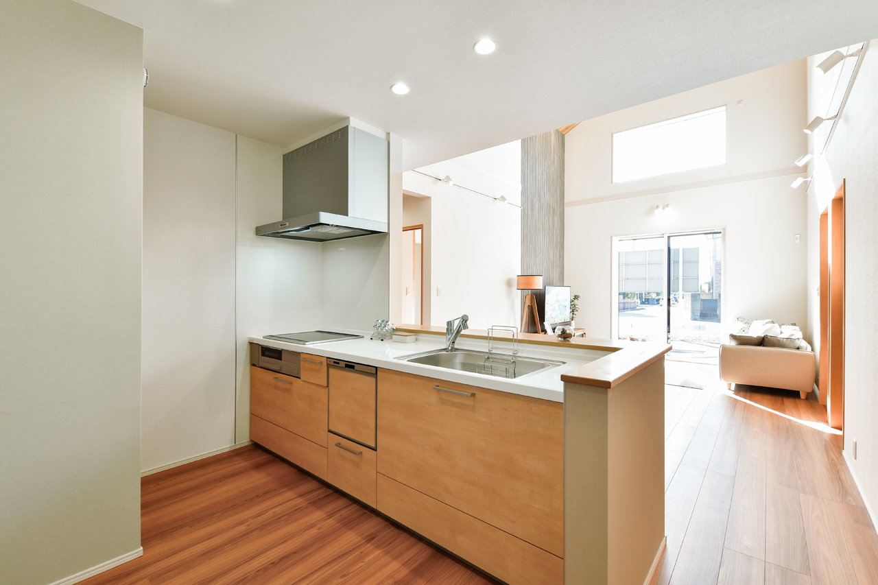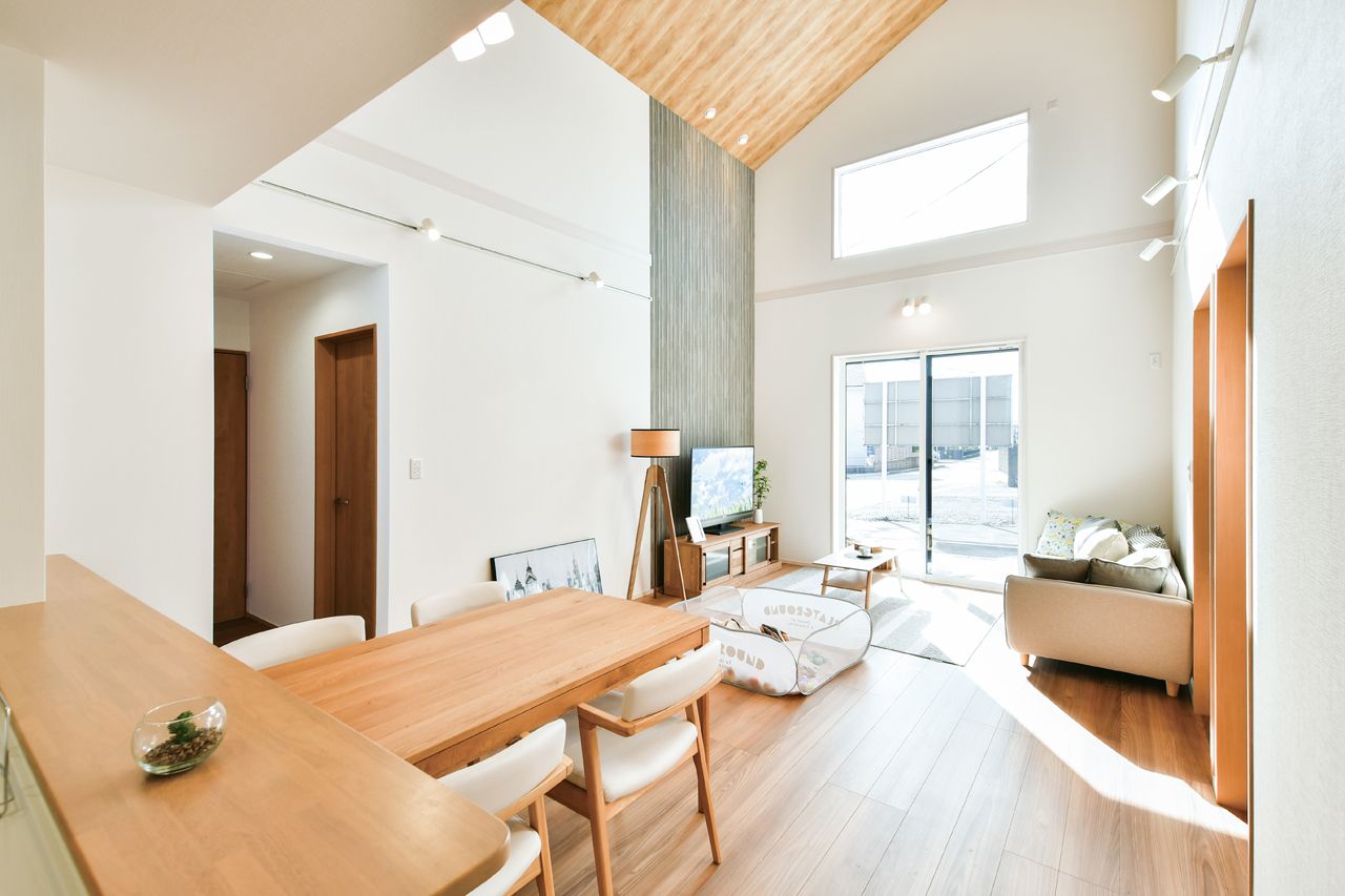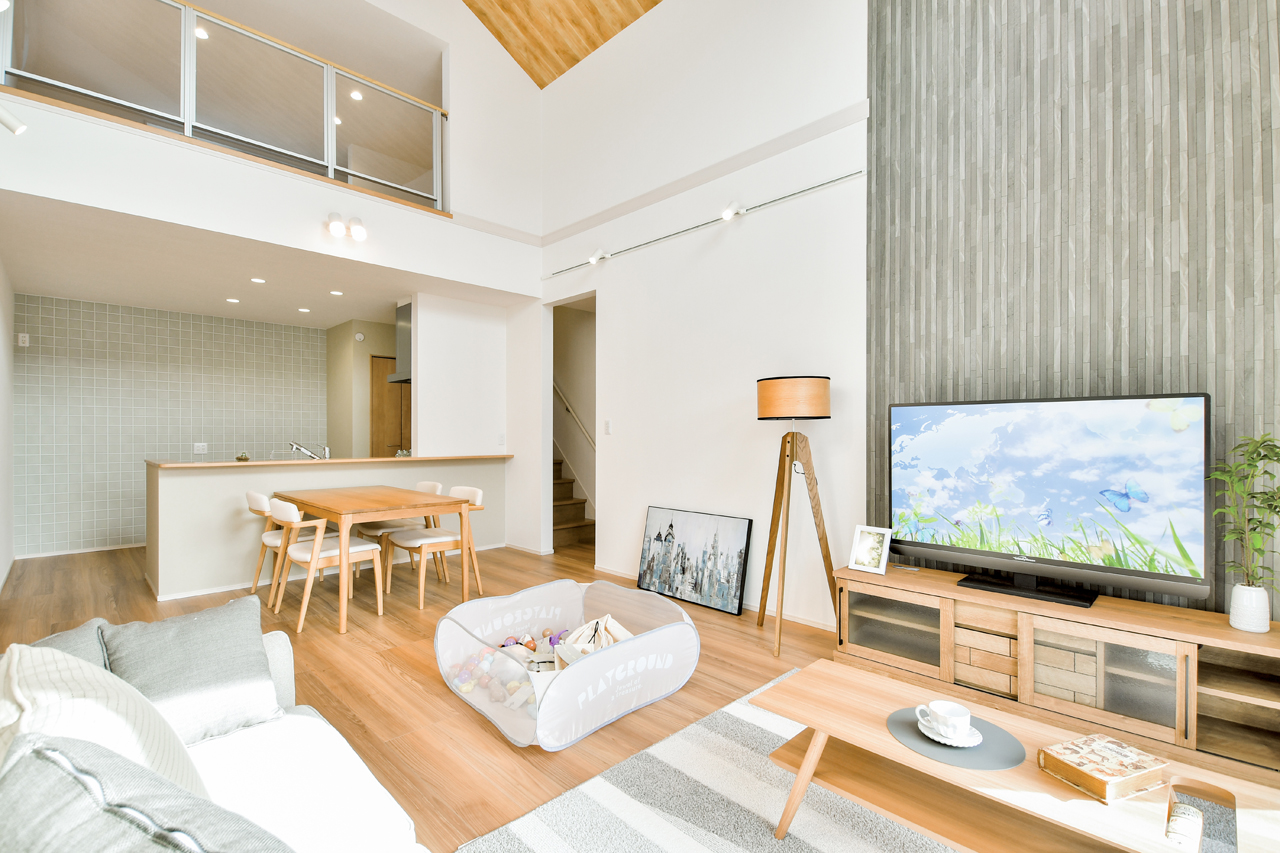 ご家族の団らんや寛ぎの中心となるリビング空間をさらに際立たせる吹抜け天井プラン。2階天井まで続くその圧倒的な存在感と広がりが訪れた方を驚きを持ってお迎えします。大切にしたいご家族やゲストをもてなす上質な空間です。