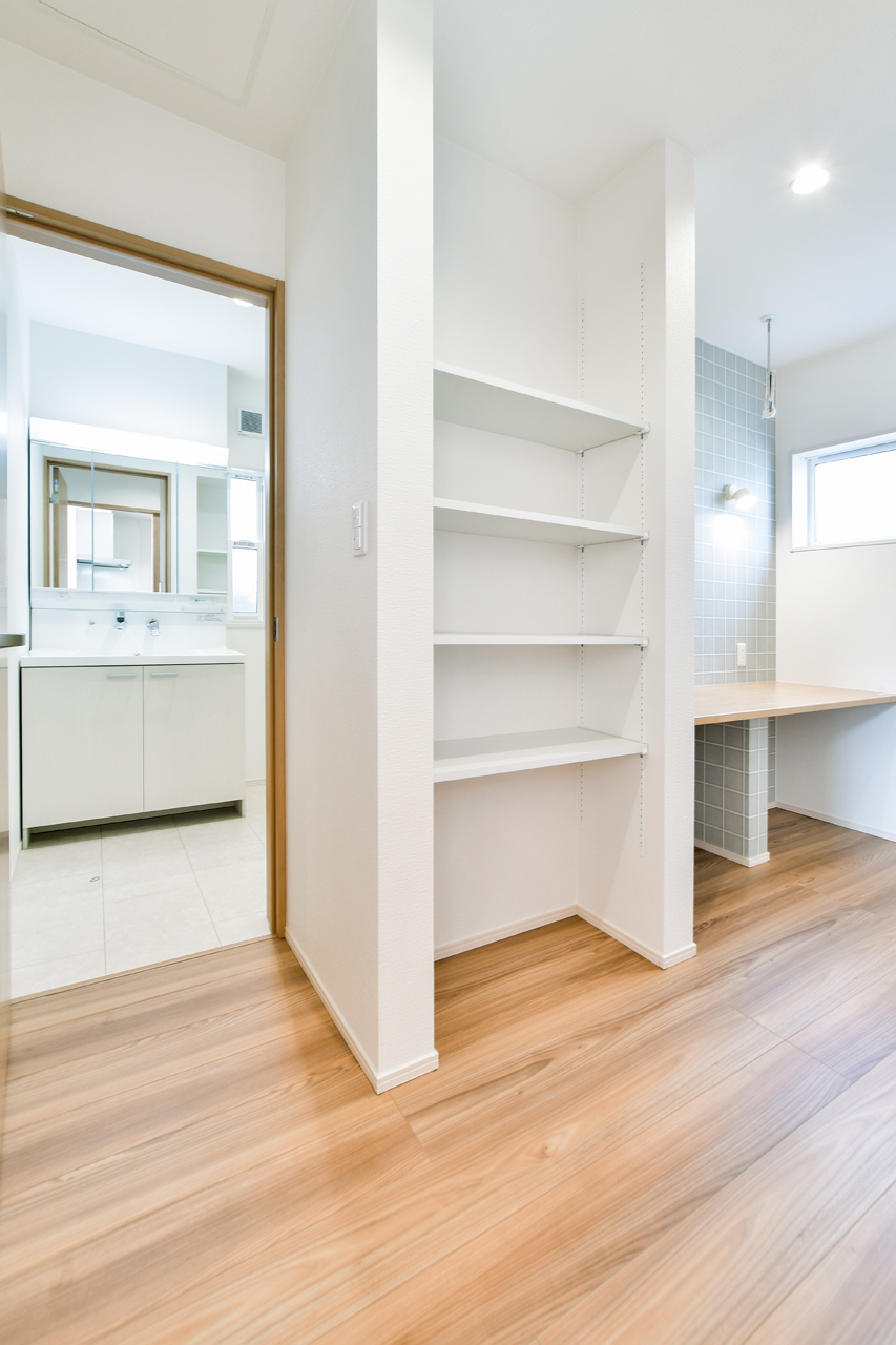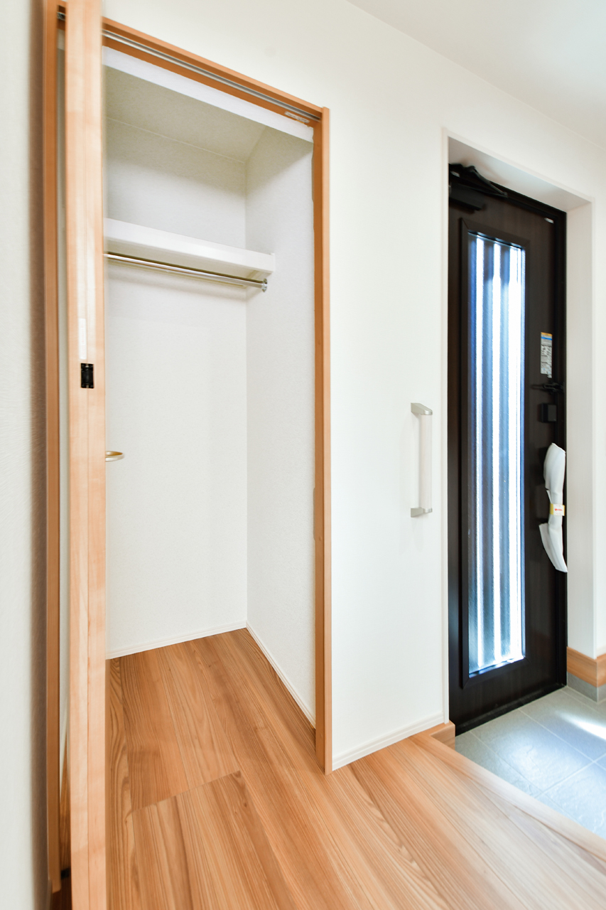 家族の分だけ必要な靴や傘は、玄関を我が物顔で占領しがちなアイテム。靴のまま出入りできるシューズクロークなら外で使う物もしっかり収納!また、玄関先は防災グッズの収納にも最適。もしもの時もすぐに持ち出すことが出来ます。