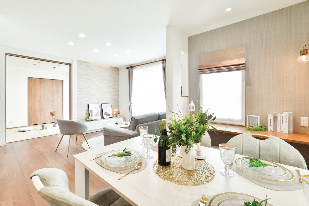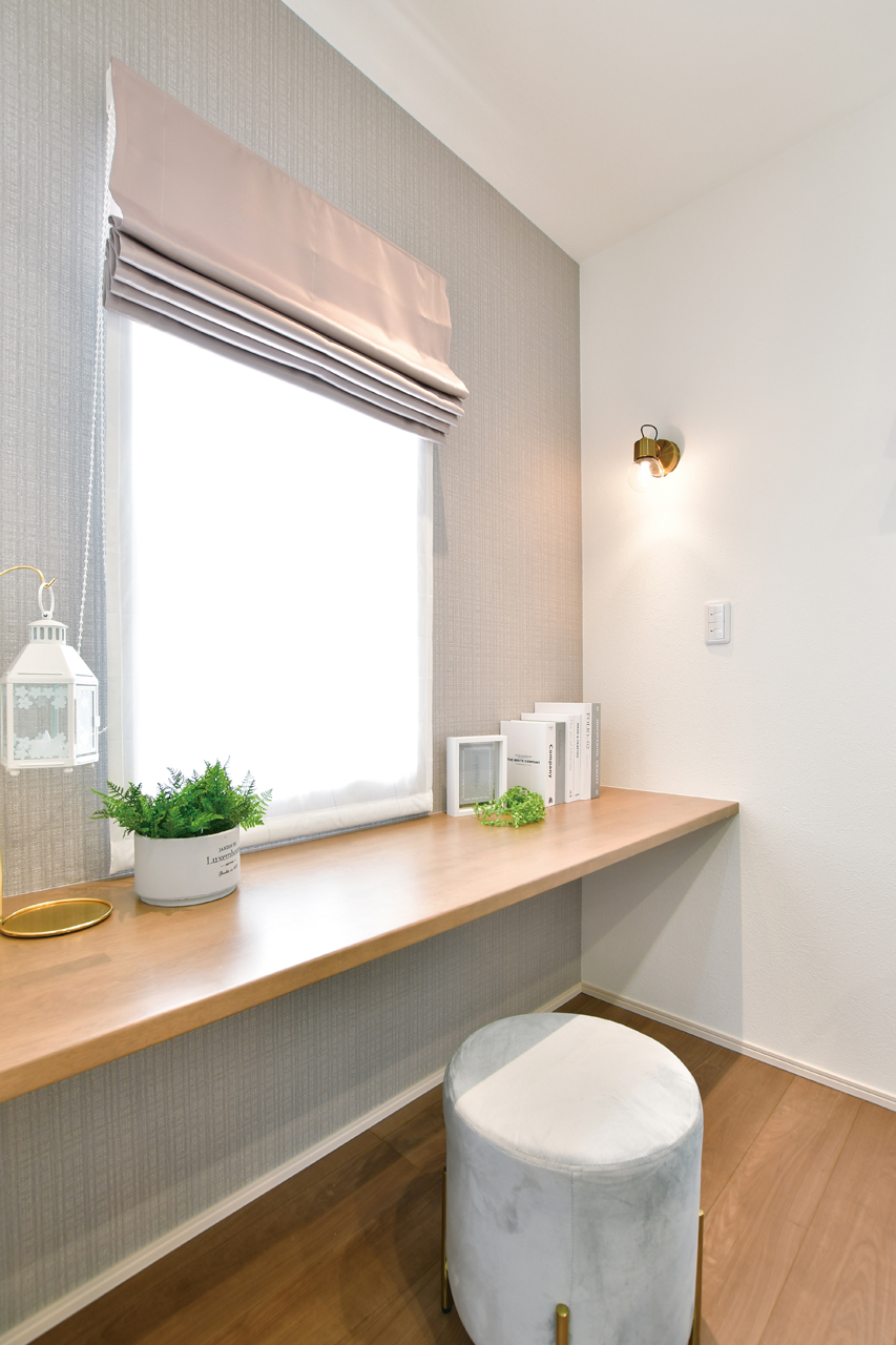 在宅ワークやお子様の宿題などに 家族の集うLDKにファミリーコーナーを設けた家