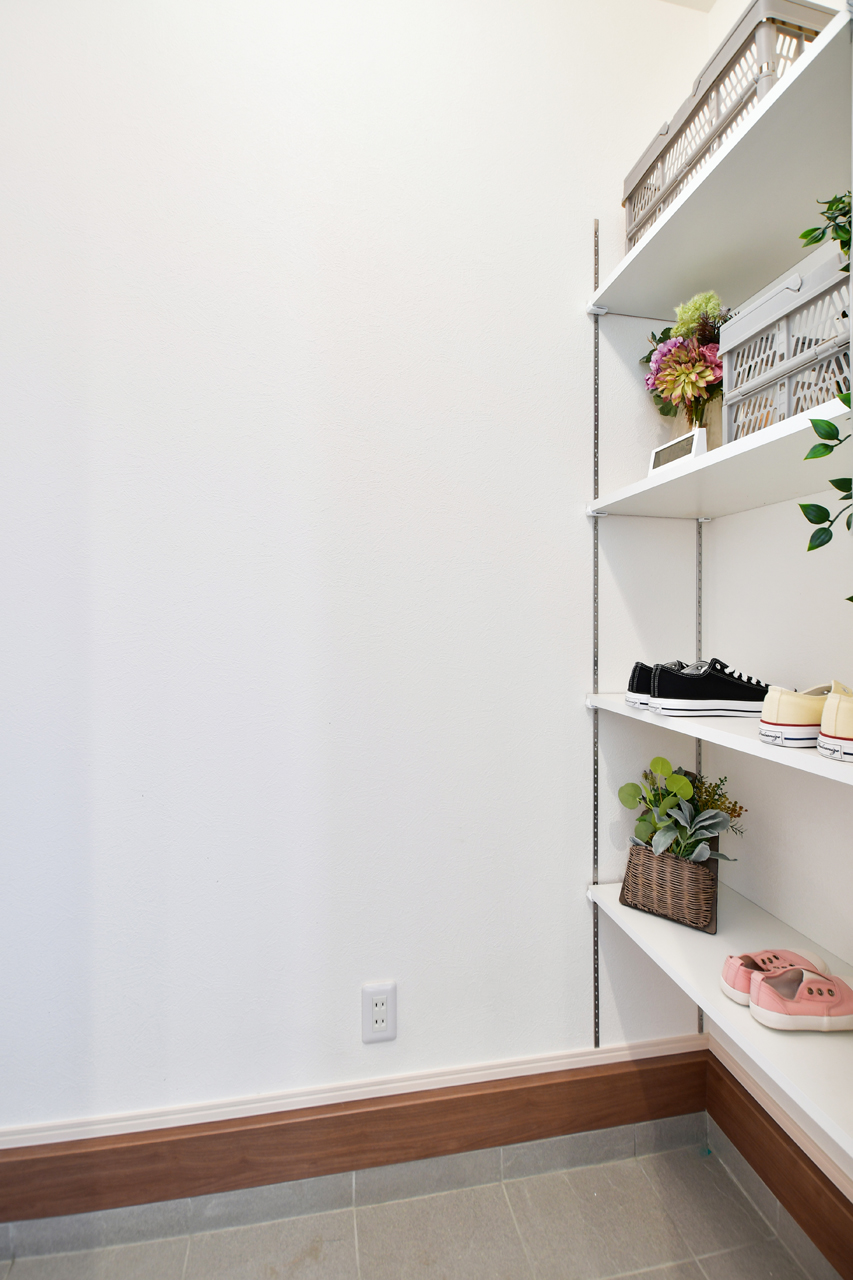 家族の分だけ必要な靴や傘は、玄関を我が物顔で占領しがちなアイテム。靴のまま出入りできるシューズクロークなら外で使う物もしっかり収納!また、玄関先は防災グッズの収納にも最適。もしもの時もすぐに持ち出すことが出来ます。