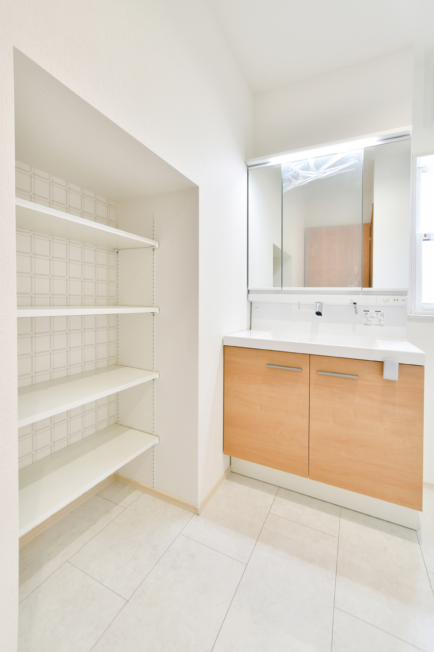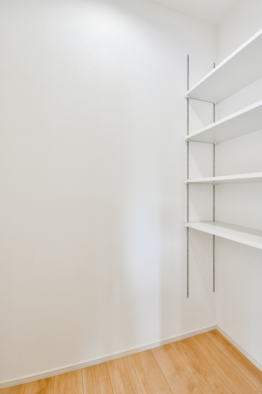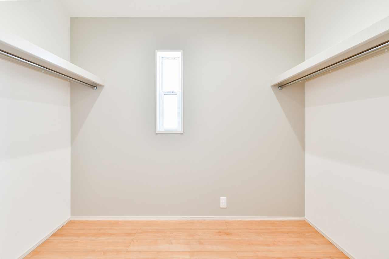 ご夫婦や子ども達の衣類をたっぷりしまえる大容量のウォークインクローゼット。季節の衣類から鞄や帽子などの小物までたっぷり保管可能。ウォークインタイプなので衣類の出し入れや整理整頓もスムーズに行えます。
