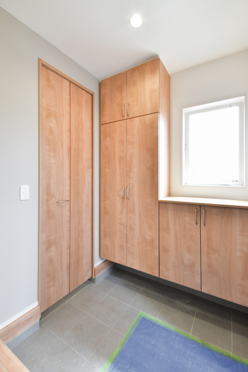 家族の分だけ必要な靴や傘は、玄関を我が物顔で占領しがちなアイテム。靴のまま出入りできるシューズクロークなら外で使う物もしっかり収納!また、玄関先は防災グッズの収納にも最適。もしもの時もすぐに持ち出すことが出来ます。